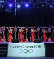 하회마을 부용대에서는 17시부터 2018 평창 동계올림픽의 성공 개최를 기원하는 성대한 지역축하 행사가 개최됐다.