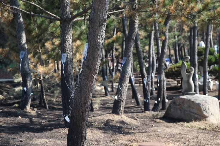 또한, 피해가 경미한 수목은 수세 회복을 돕고 고사를 예방하기 위해 수간주사 및 영양제를 접종하는 작업도 병행하고 있다.