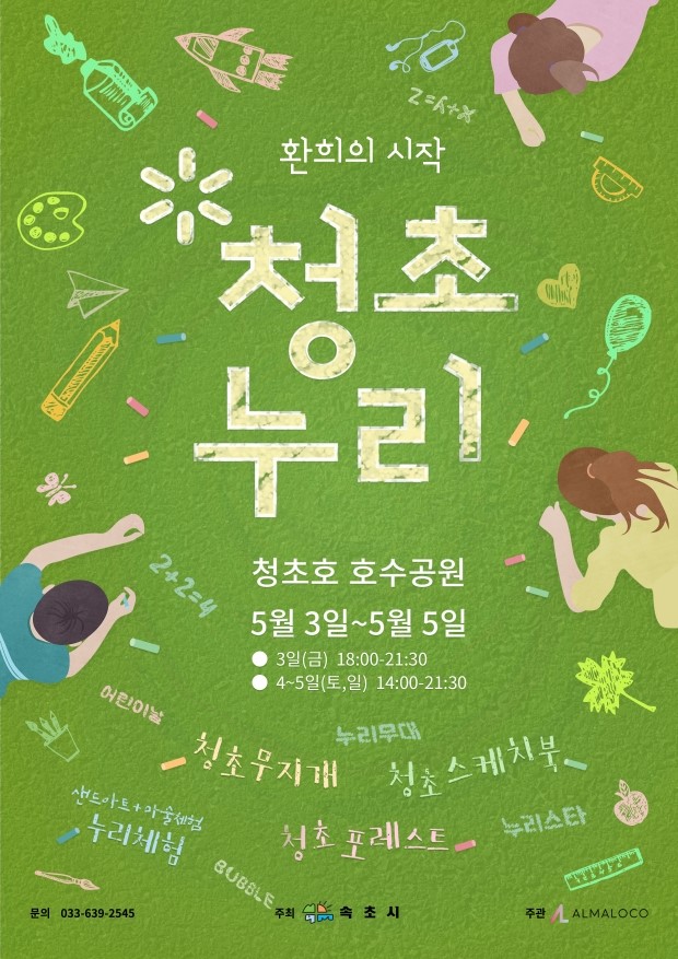속초시는 오는 5월 3일(금)부터 5일(일)까지 3일간 청초호 호수공원 일원에서 어린이를 위한 봄빛축제 「청초누리-환희의 시작」을 개최한다.