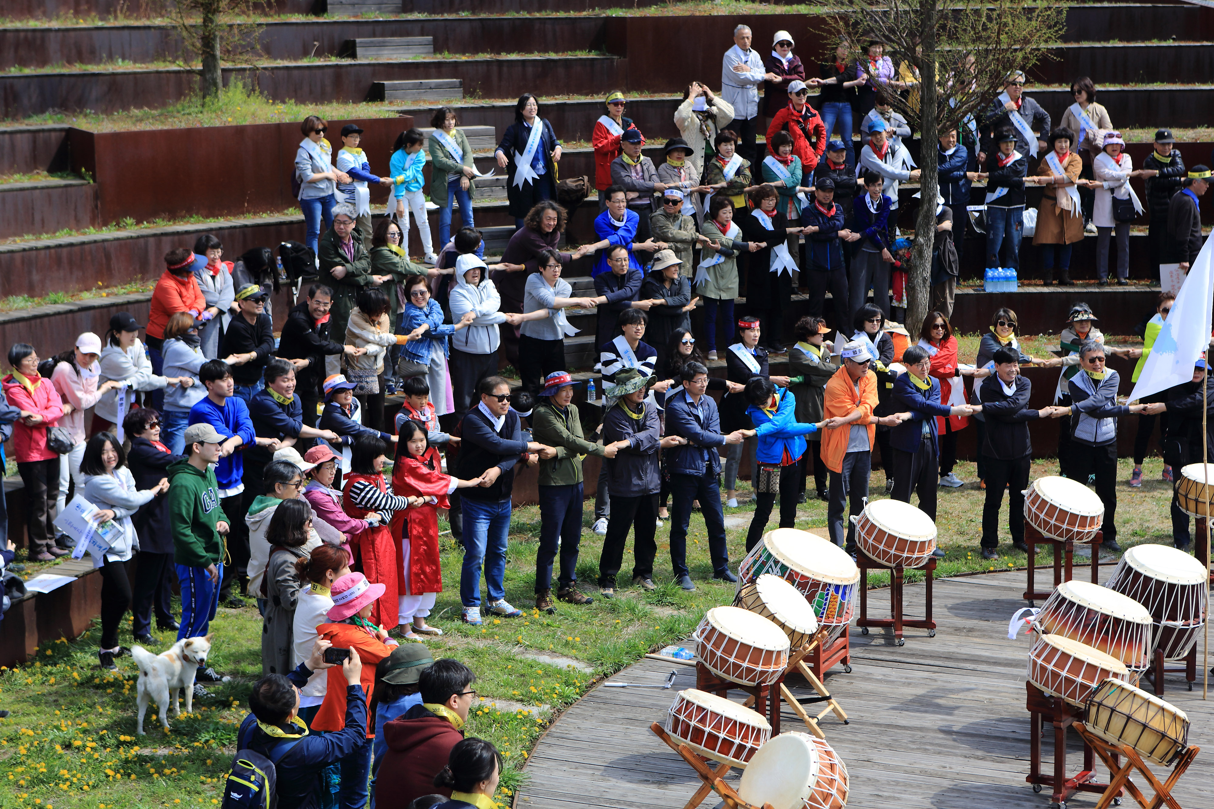 '판문점선언' 1주년을 맞아 4월 27일(토) 강화에서 고성을 연결하는 DMZ 평화 누리길 500㎞ 구간에서 '한반도 평화를 위한 DMZ 평화손잡기' 행사가 진행되었다.