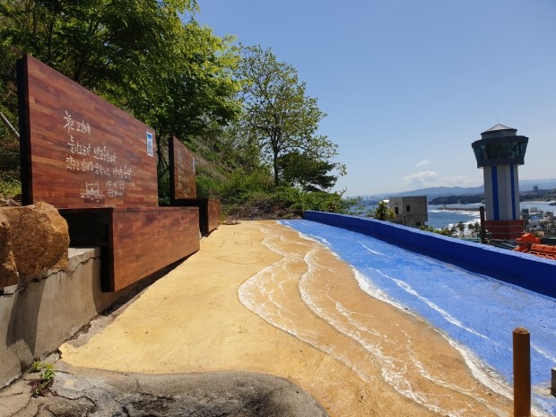 이밖에도 논골1길 일원에 해변을 연출시킨 바닥 벽화 조성과 감성 벤치를 설치하여 논골담길의 새로운 포토존을 마련했다.