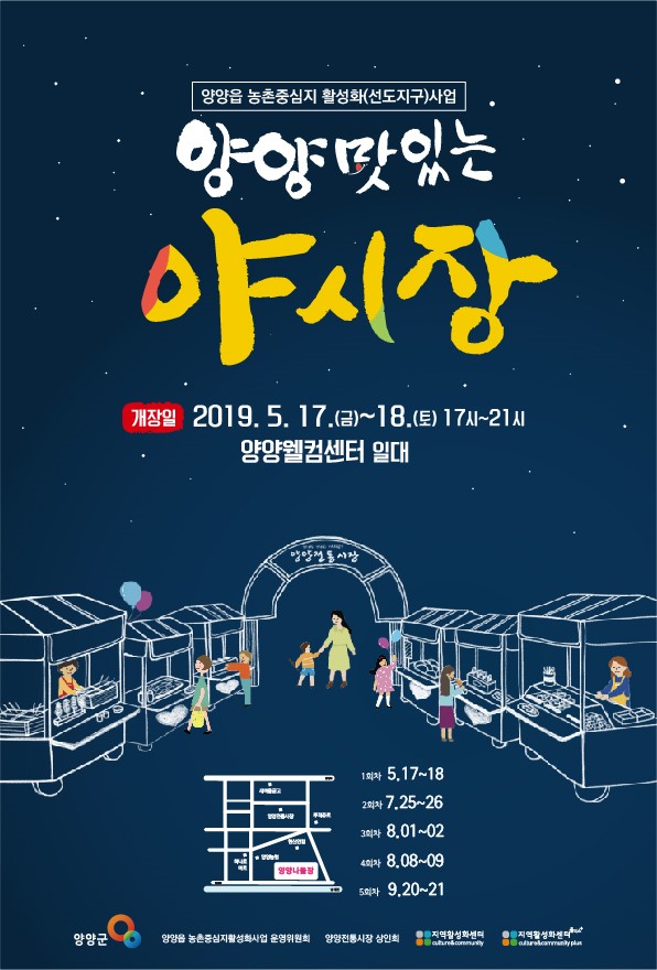 지난해 여름 군은 양양읍 농촌중심지 선도지구 사업으로 성수기(8.2~8.4)에 야시장을 운영, 먹거리·볼거리·즐길거리가 함께 하는 문화가 있는 시장으로 만들어 시범 운영한 결과 합격점을 받아 올해부터는 정기 운영을 하게 됐다.