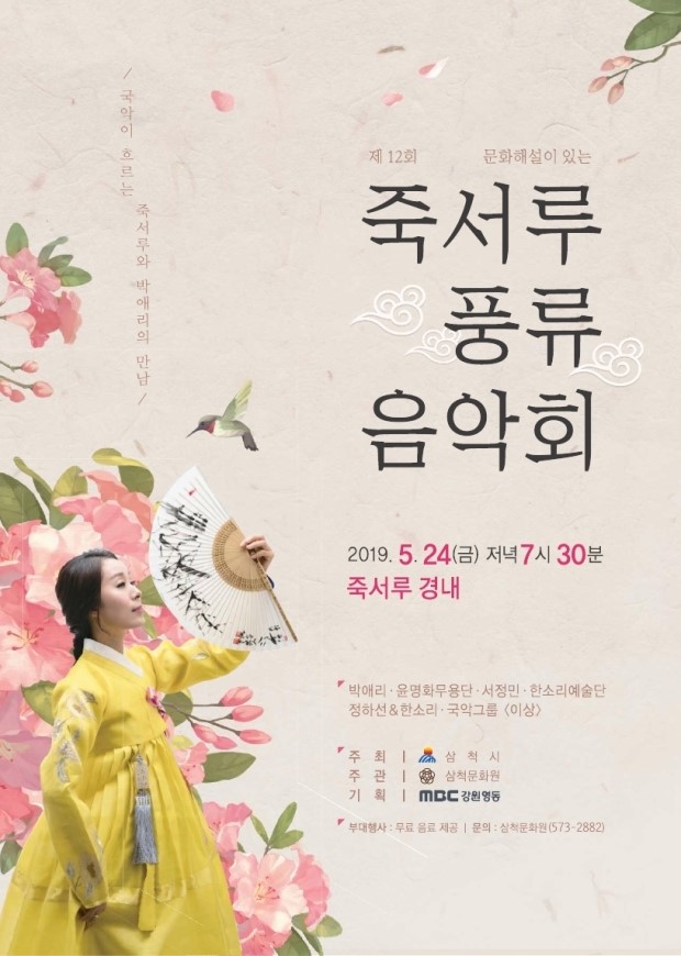 싱그러운 오월의 정취를 가득 담은「제12회 죽서루 풍류 음악회」가 오는 5월 24일(금) 오후 7시 30분 삼척 죽서루 경내에서 열린다.