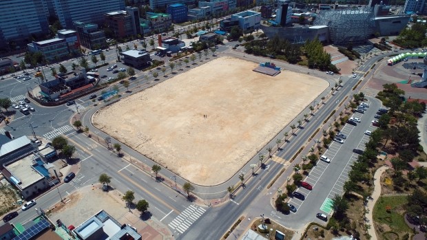 속초시의 엑스포 상설 이벤트장(속초시 조양동 1546-1번지)이 대형 잔디광장으로 탈바꿈한다.