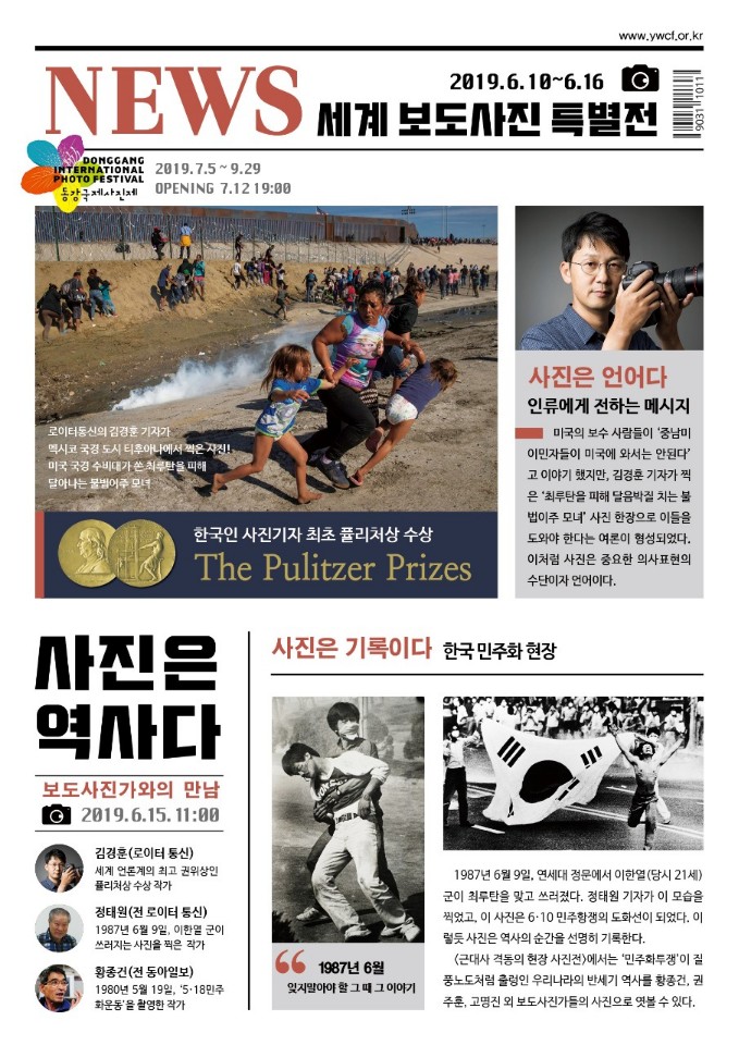 이와 함께 한국인 사진기자 최초로 퓰리처상을 수상한 김경훈 기자(로이터 통신)의 사진전도 진행한다. 김경훈 기자는 멕시코 국경 도시 티후아나에서 미국 국경 수비대가 쏜 최루탄을 피해 달아나는 불법 이주 모녀 사진을 찍어 미국 언론계 최고 권위의 퓰리처상을 수상했다.