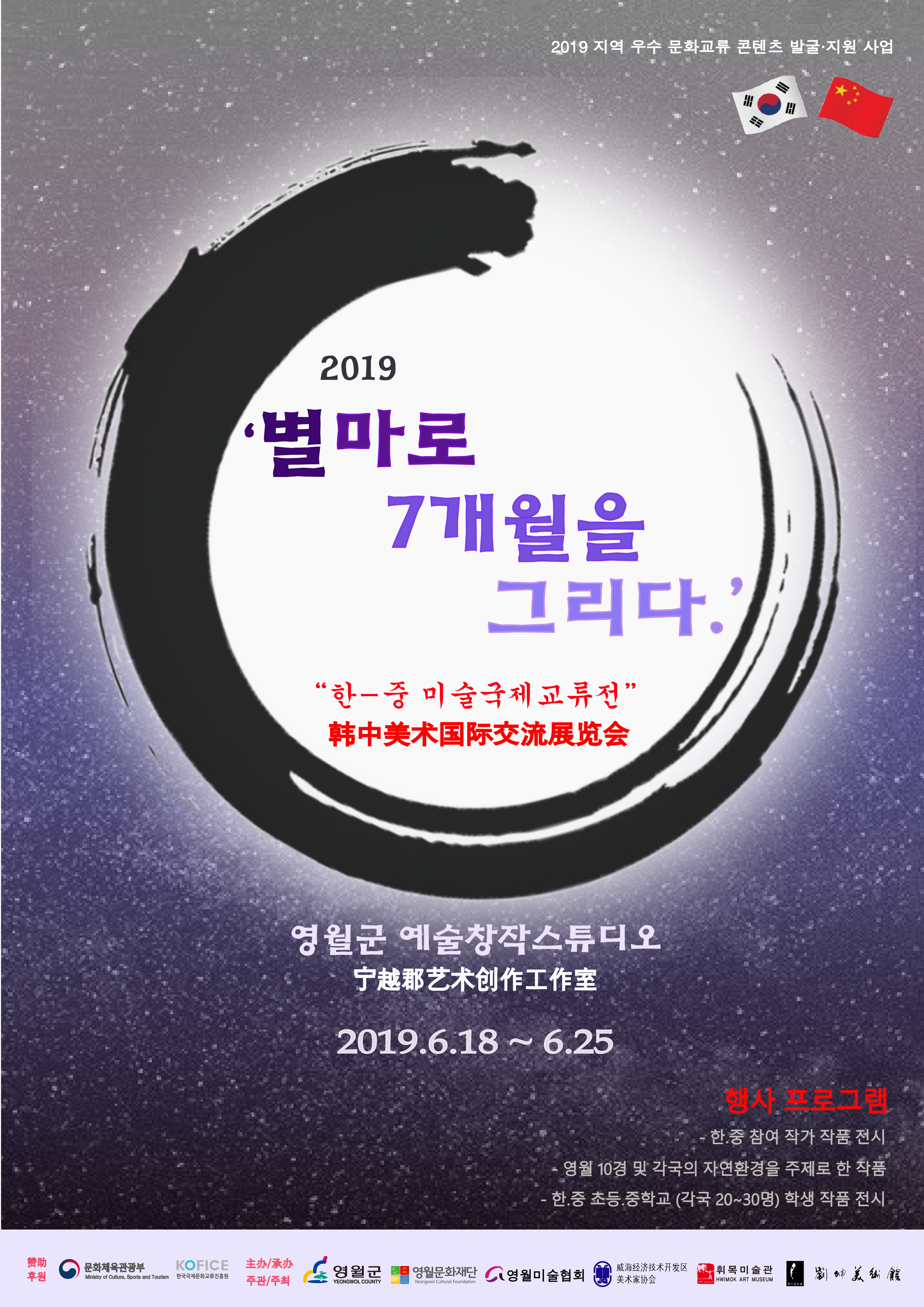 영월군과 중국 위해시 미술작가들이 참여하는 ‘별마로 7개월을 그리다’ 한중 미술국제교류전이 오는 6월 18일부터 25일까지 영월군 예술창작스튜디오에서 열린다.