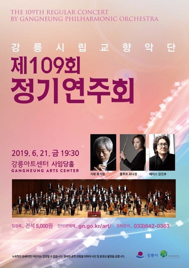 강릉시립교향악단(지휘자 류석원) 제109회 정기연주회가 21일 오후 7시 30분 강릉아트센터 사임당홀에서 세계적 명성의 플루티스트 최나경과 협연으로 이루어진다.