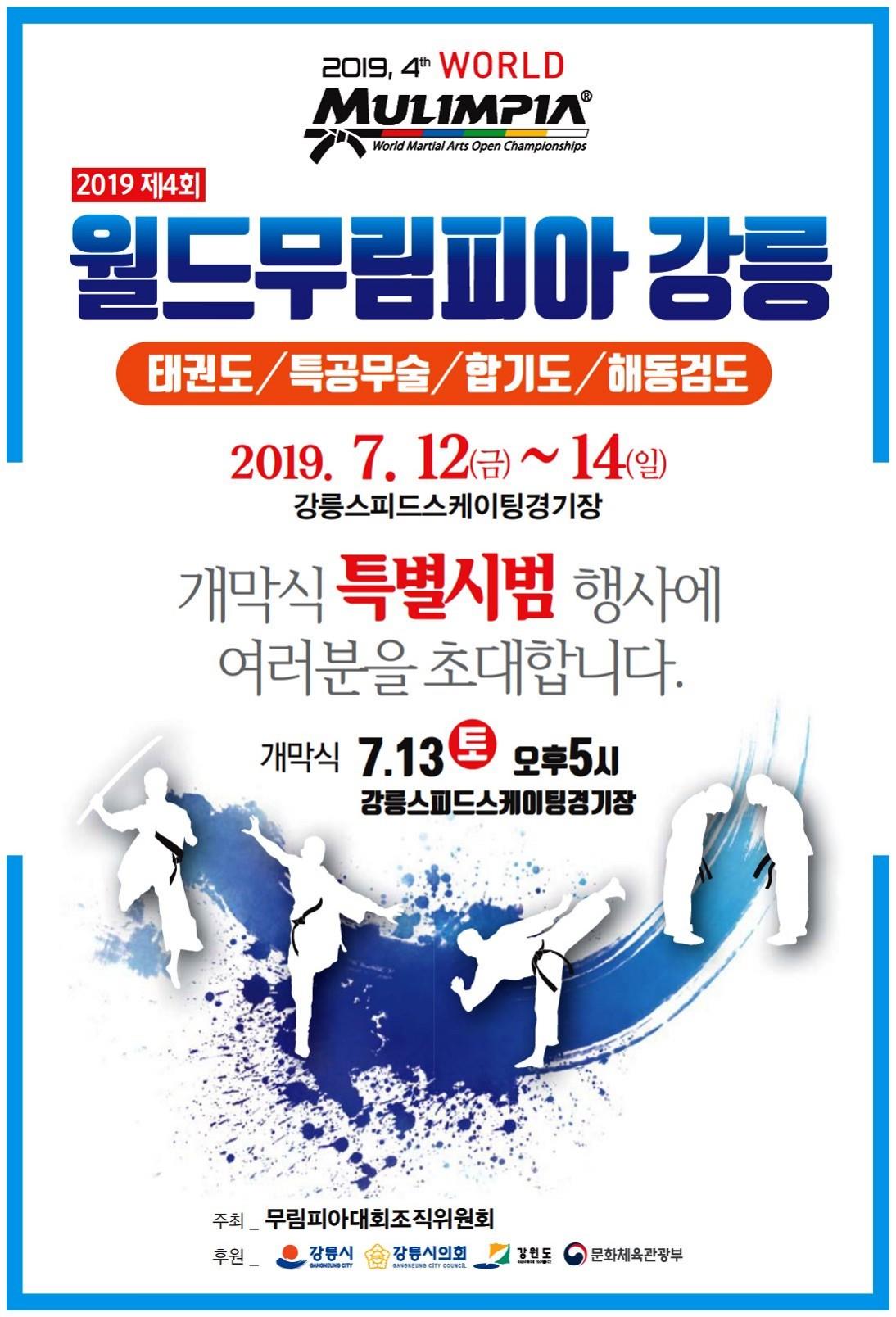 오는 12일부터 14일까지 강릉스피드스케이팅경기장에서 세계 무술인의 화합 축제 제4회 월드무림피아대회가 글로벌 스포츠 도시 강릉시에서 개최된다.