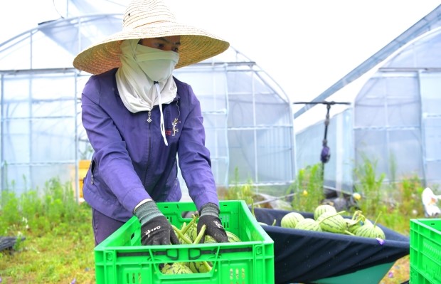 아열대 과일로 알려진 애플수박이 최북단 화천지역에서 한창 수확되고 있다.