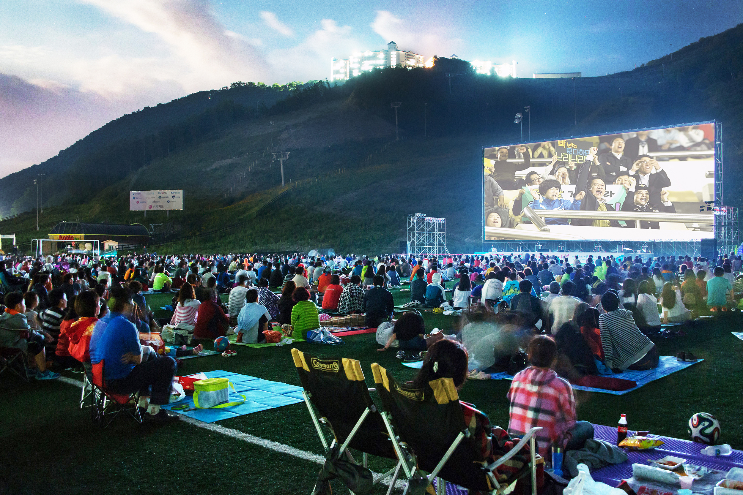 지난해 고원1구장에서 열렸던 쿨 시네마는 올해 다시 오투리조트 스키하우스로 자리를 옮겨 영화 관객들을 맞이한다.