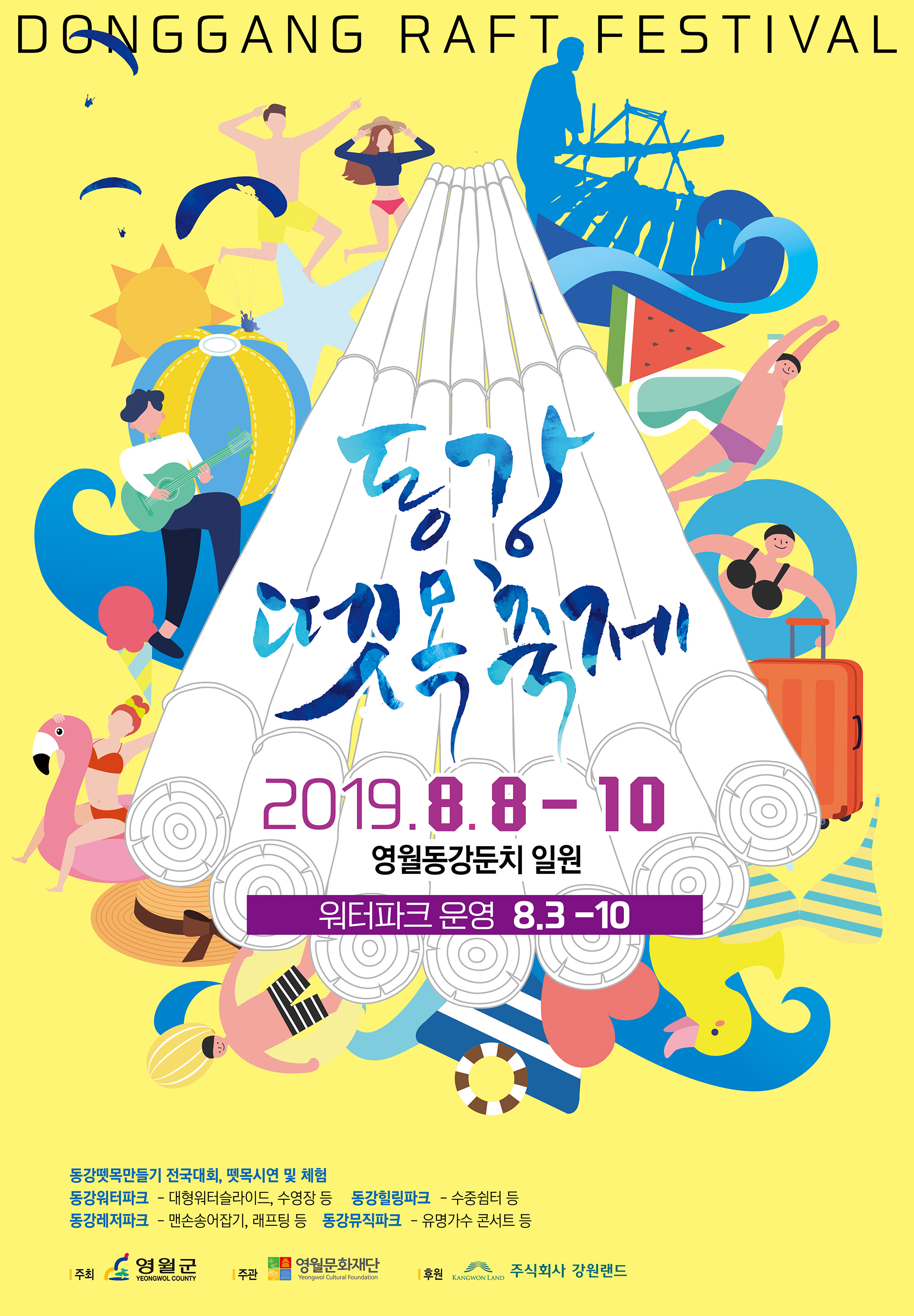 영월군이 주최하고 재단법인 영월문화재단이 주관하는 2019 동강뗏목축제가 8월 3일 토요일부터 8월 10일 토요일까지 8일간의 일정으로 개최된다.