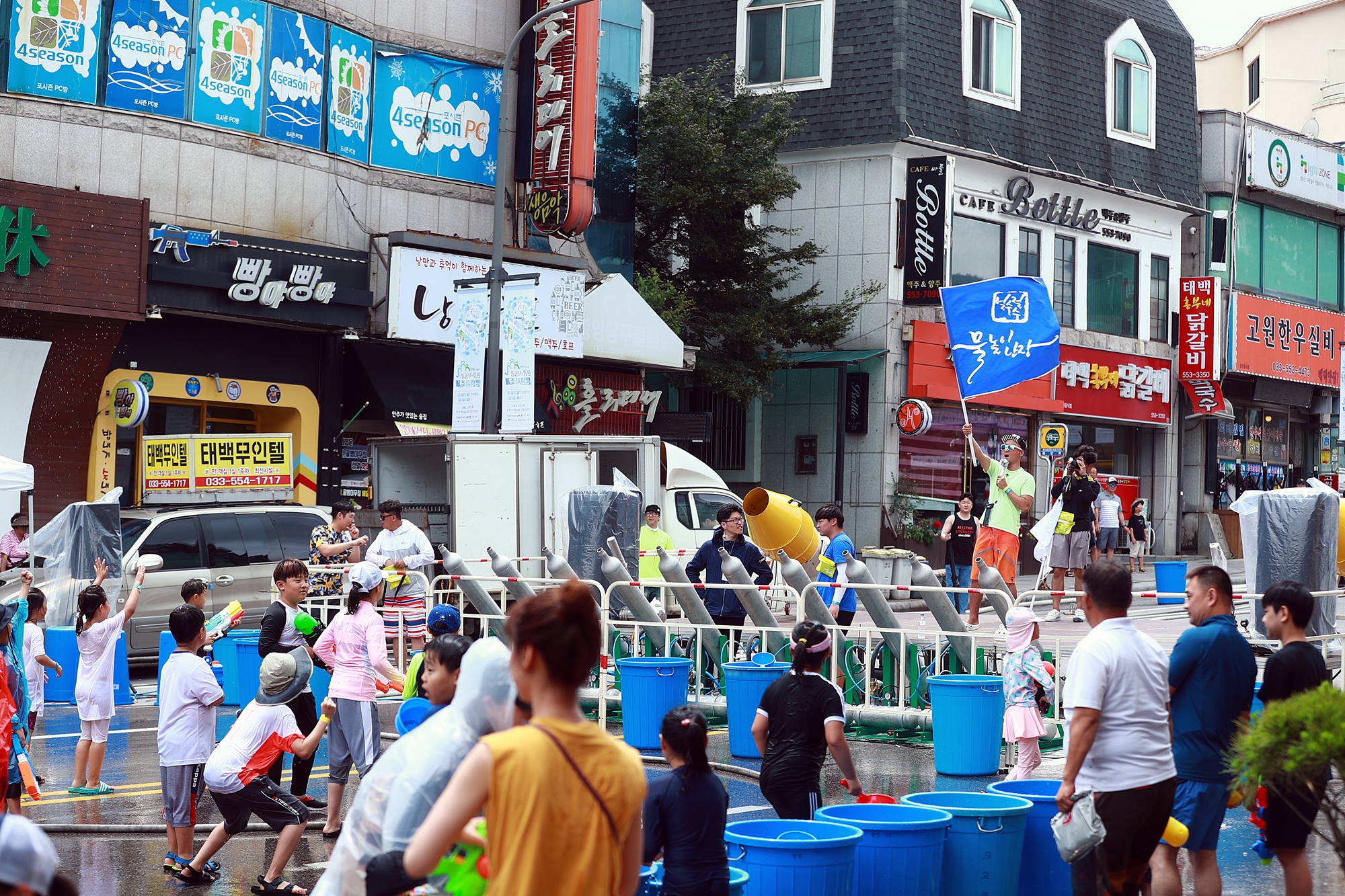 태백시는 28일 오후 1시 중앙로 일대에서 얼수절수 물난장2일차를 진행하며 비보이 축하공연 등으로 축제의 열기를 더 높였다. 태백시민과 관광객 모두 동심으로 돌아가 물총도 함께 쏘며 한여름 무더위를 즐겼다.