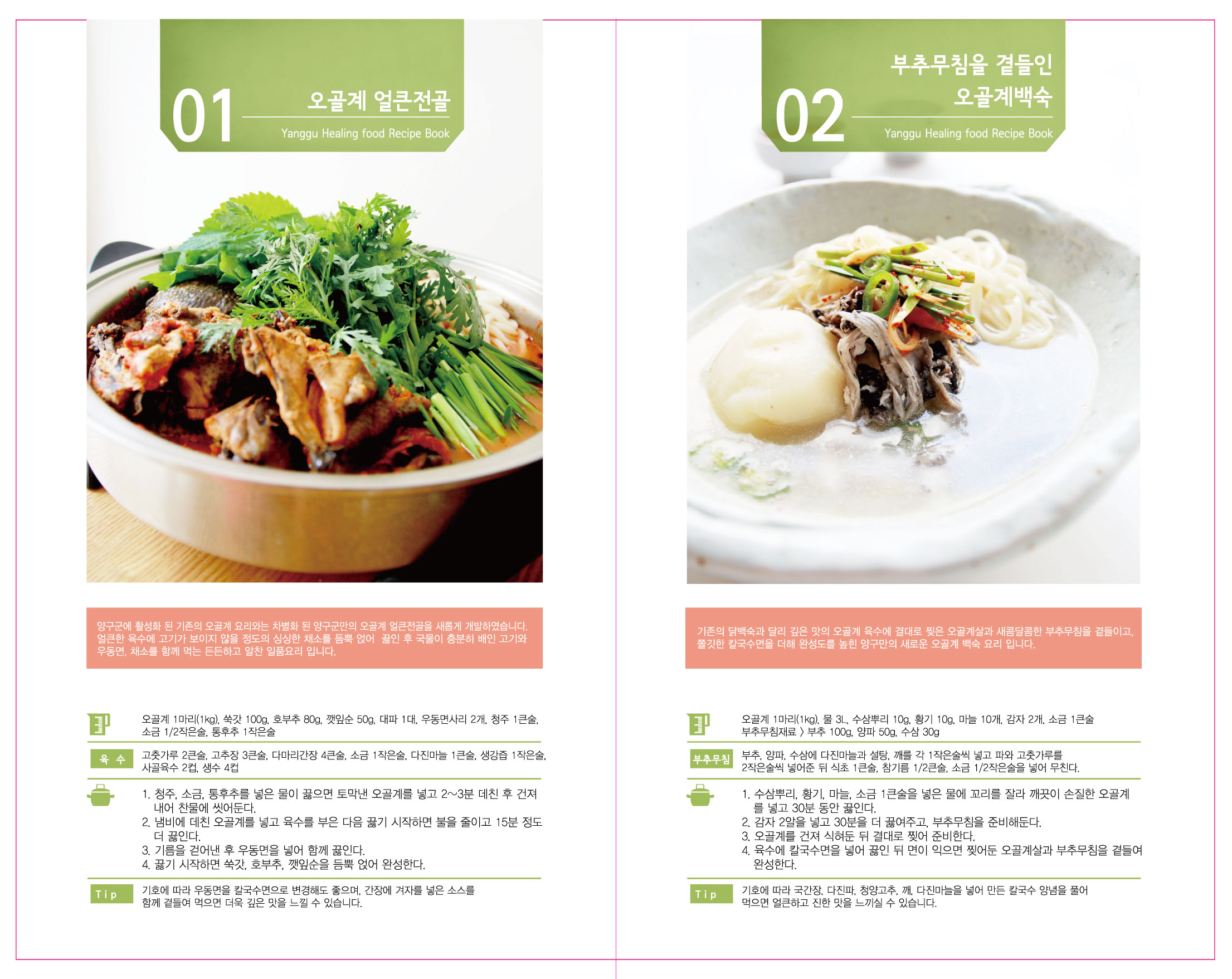 개발된 음식은 ▲오골계 얼큰전골 ▲부추무침을 곁들인 오골계 백숙 ▲오골계 초계탕 ▲마늘콩장 소스를 곁들인 오골계튀김 ▲곰취(시래기) 잔멸치덮밥 ▲곰취 주먹밥 ▲차돌박이 시래기솥밥 ▲차돌박이 시래기전골 ▲파프리카 물김치 소면말이 ▲파프리카 냉우동 ▲파프리카 백김치 ▲아스파라거스 나물무침 ▲곰취 머핀 ▲수박&멜론 블랜디드 등이다.