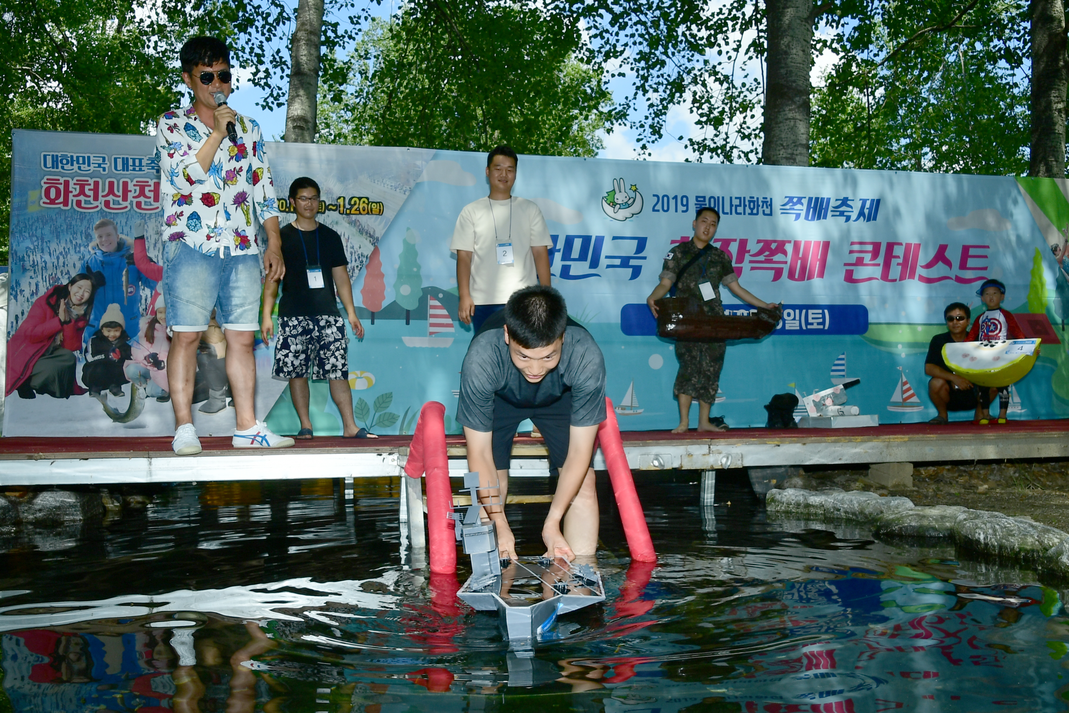 2019 미니쪽배 콘테스트가 3일 화천읍 붕어섬 특설무대에서 참가자 69팀과 관광객 등이 참석한 가운데 열렸다. 그랑프리를 차지한 '천연기념물 28호'에게는 시상금 200만 원이 수여됐다.