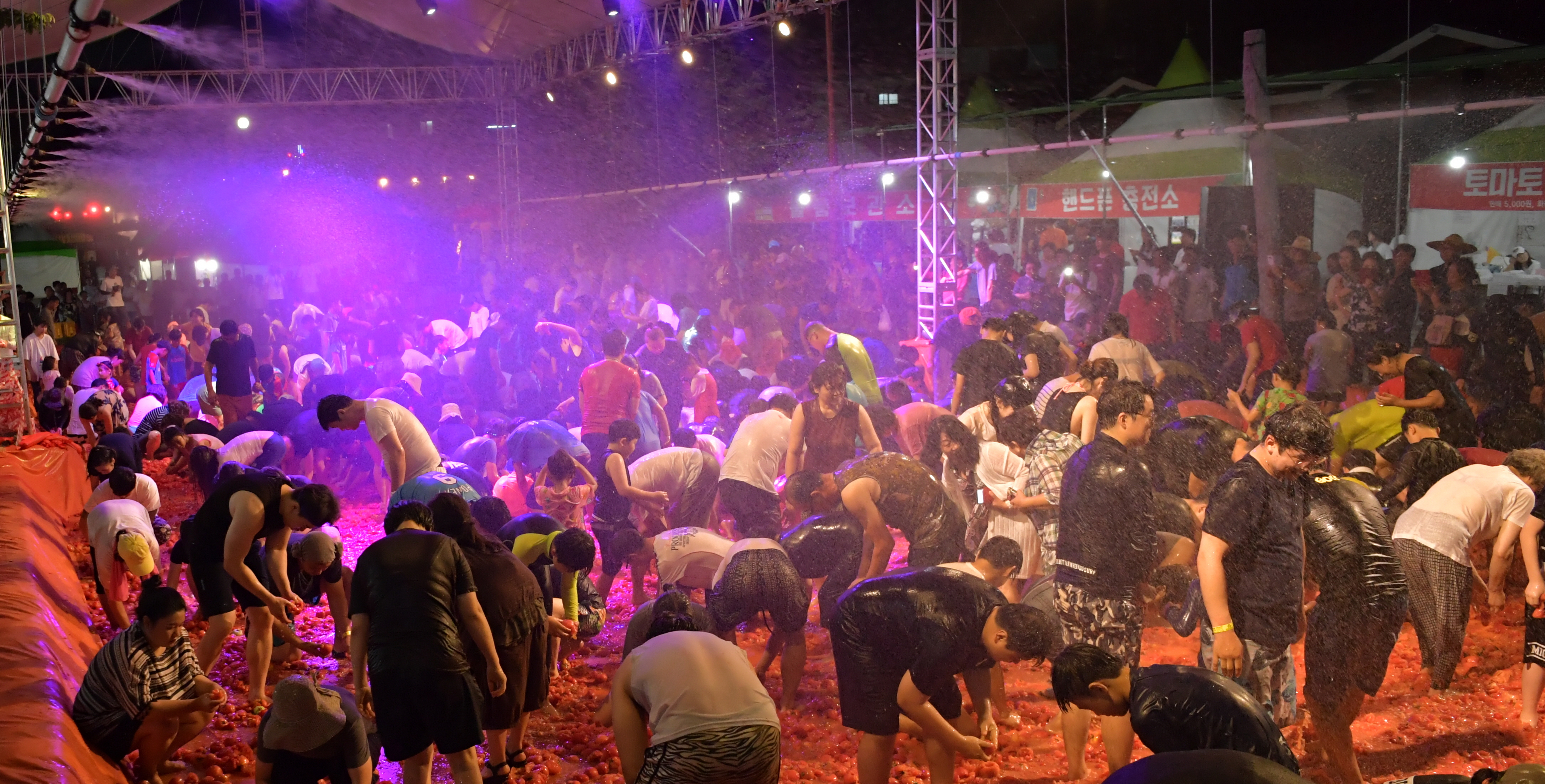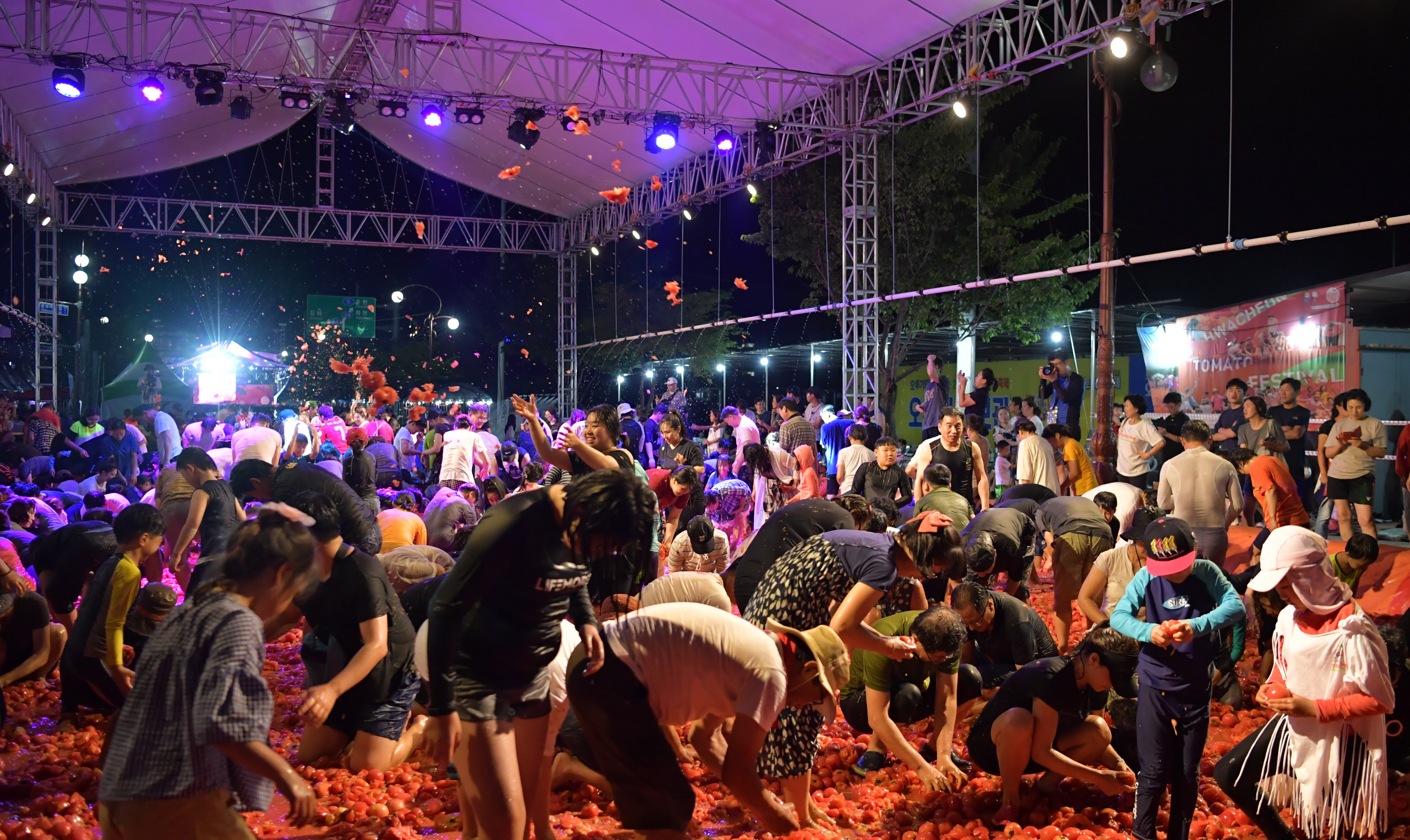 17회쨰를 맞이하는 화천토마토축제가 지난 3일 밤, 처음으로 ‘야간 황금반지를 찾아라’ 이벤트를 열었다. 수 많은 관광객들이 축제의 밤을 즐기고 있다.