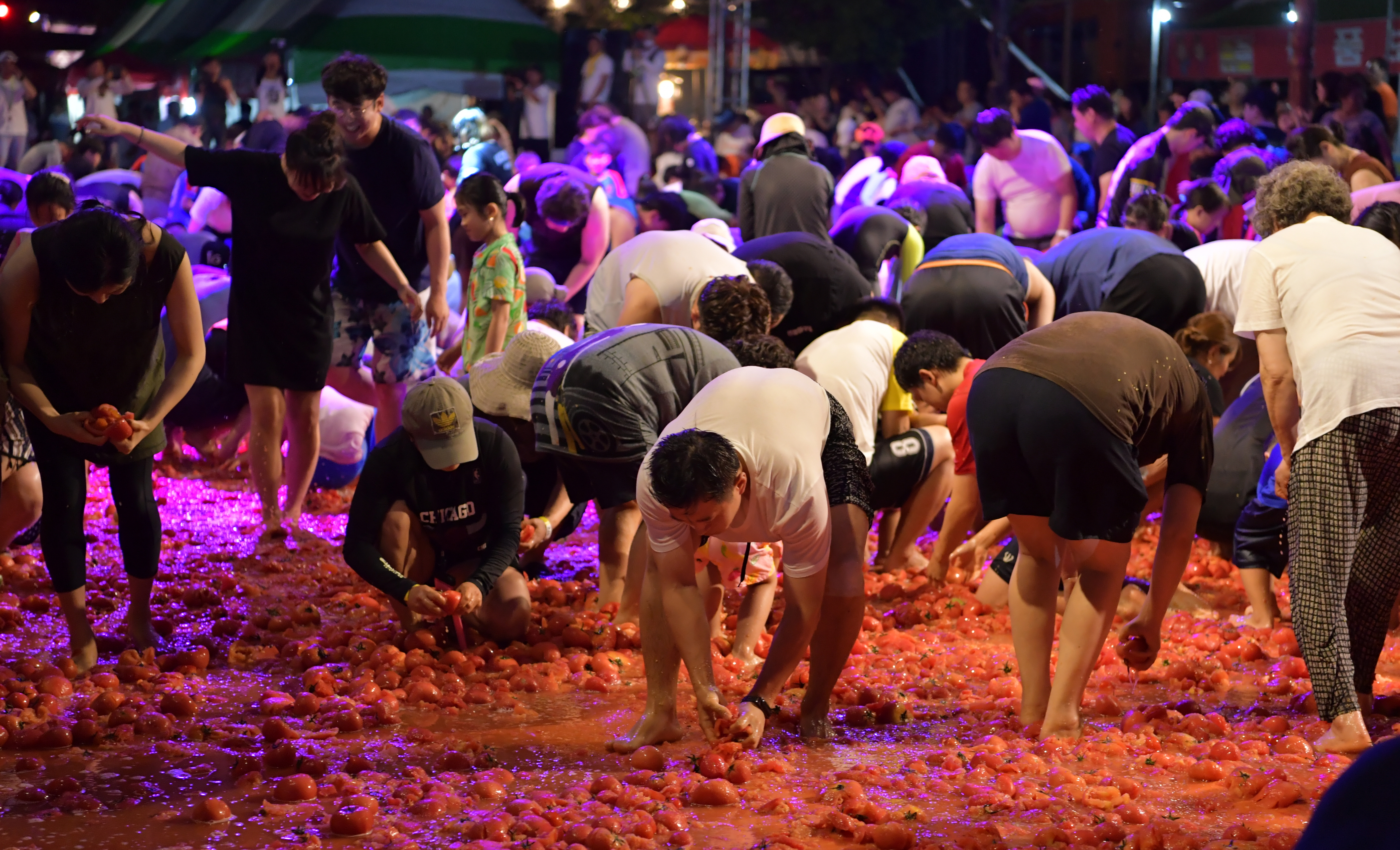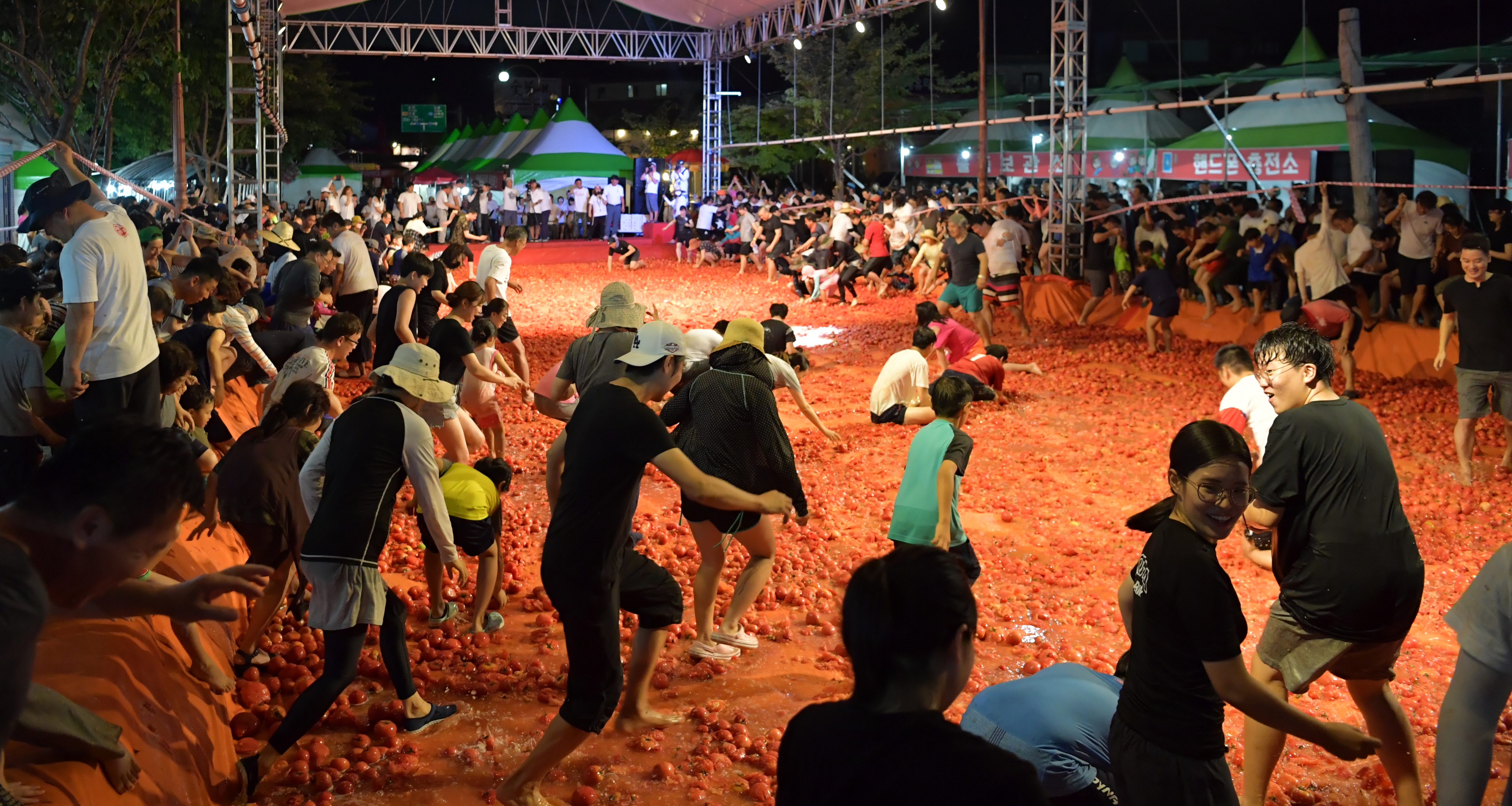 17회쨰를 맞이하는 화천토마토축제가 지난 3일 밤, 처음으로 ‘야간 황금반지를 찾아라’ 이벤트를 열었다. 수 많은 관광객들이 축제의 밤을 즐기고 있다.