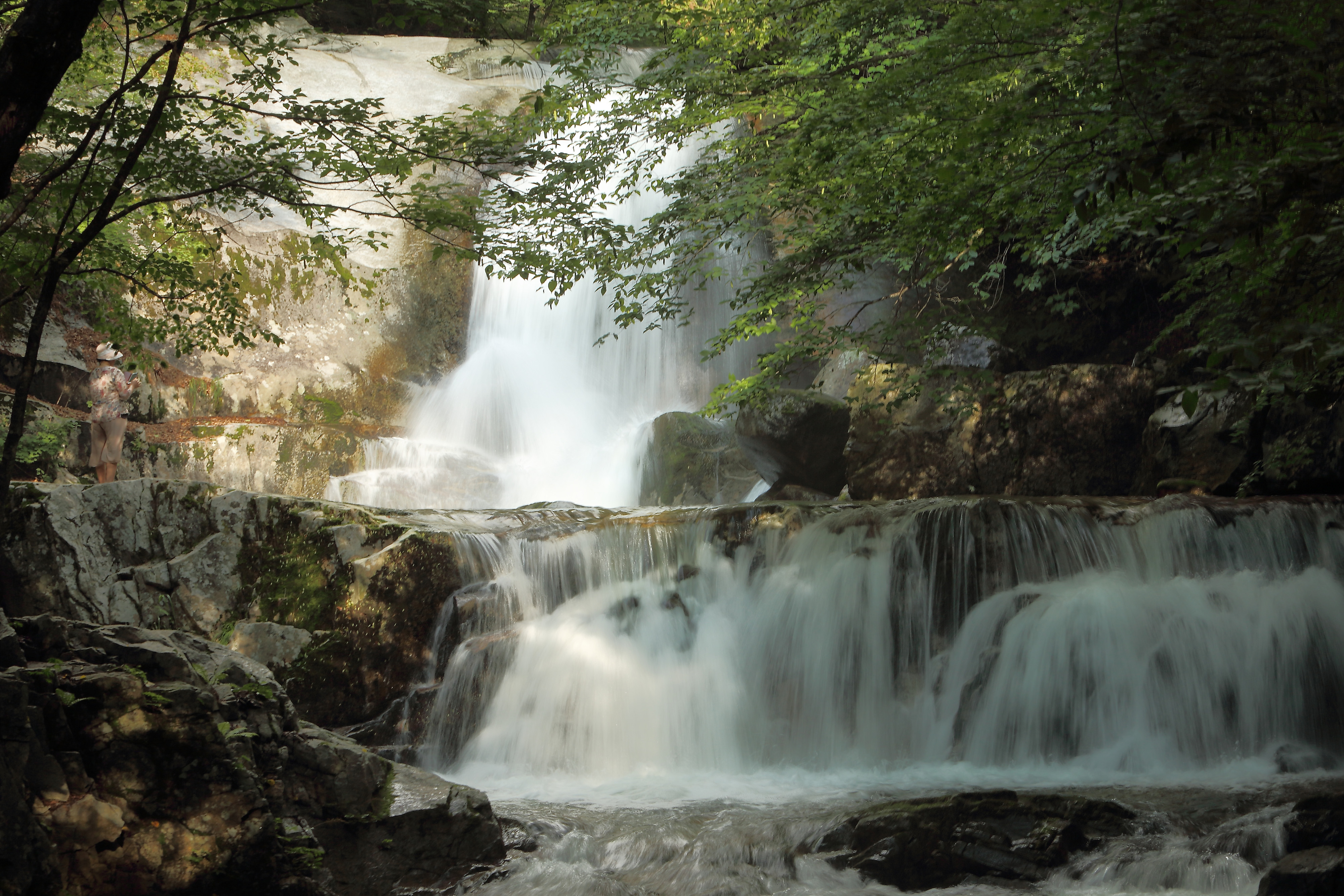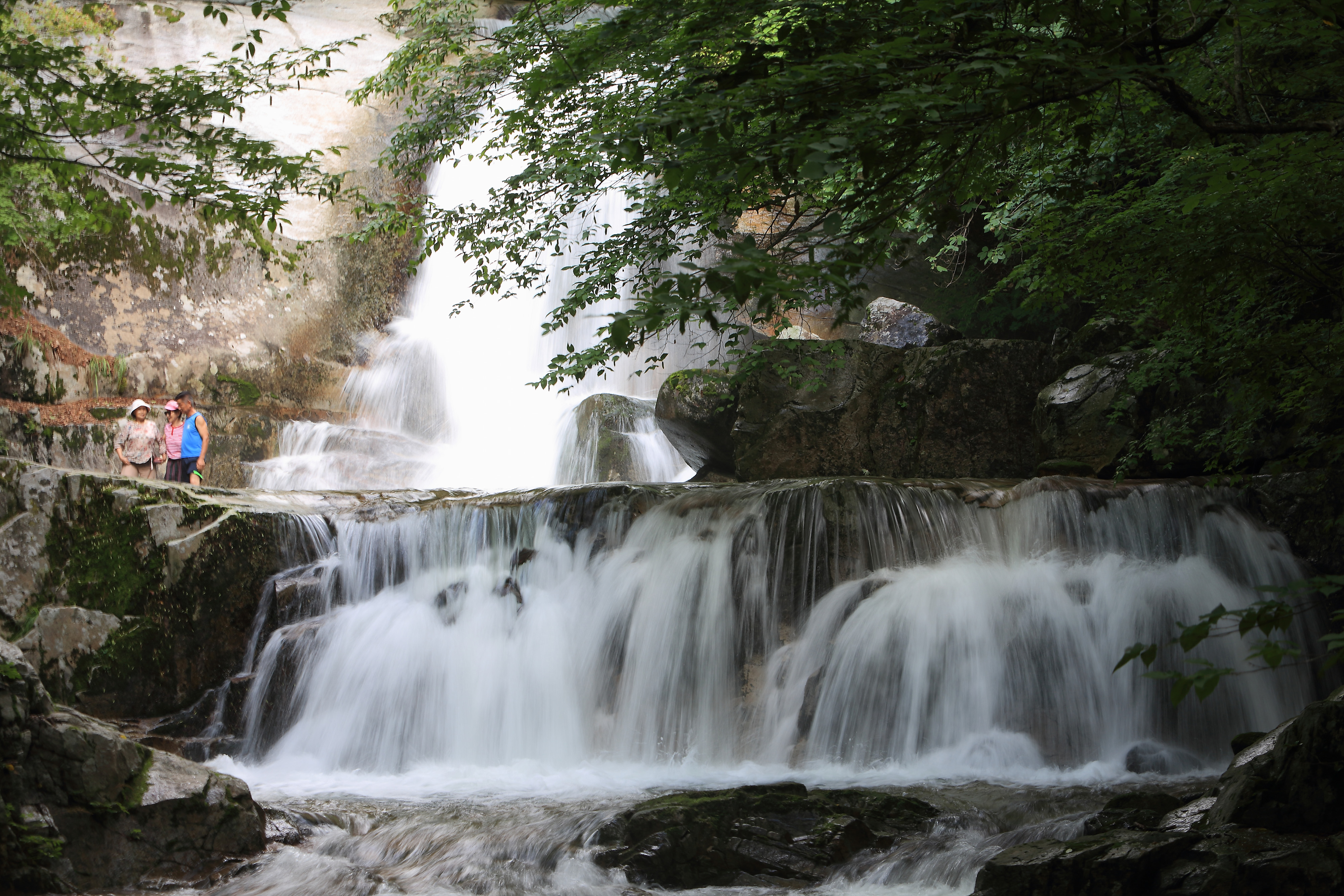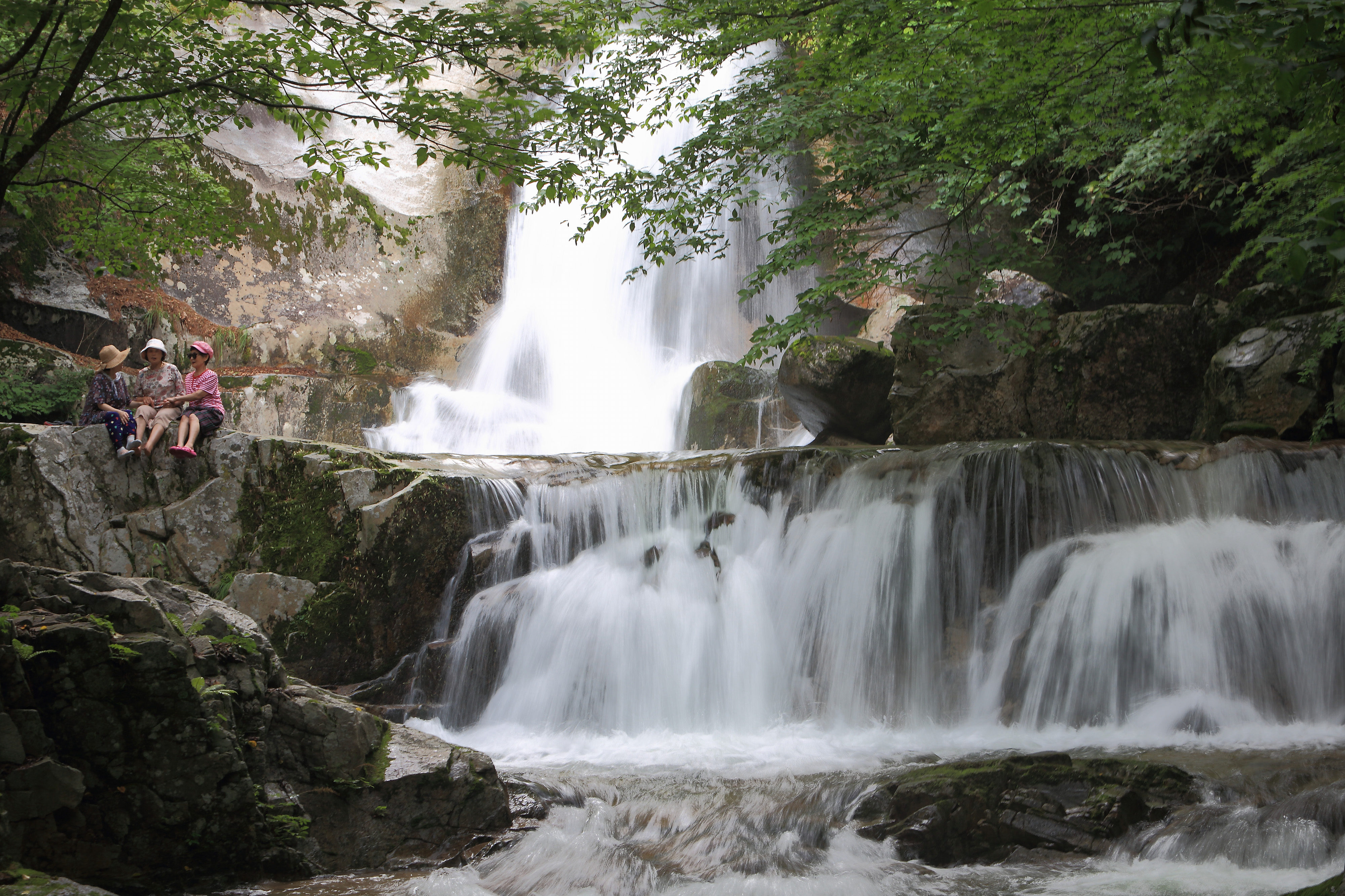 인제 기린면에 위치한 방태산 이단폭포에서 떨어지는 시원한 물줄기와 방태산의 울창한 수림이 멋진 풍경을 연출하며 관광객들에게 시원한 여름을 선사하고 있다.