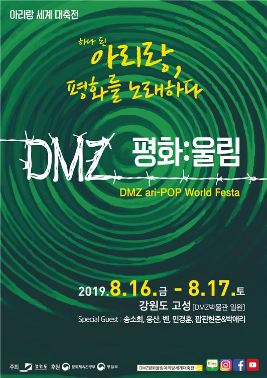다가오는 8월 16일(금) ~17일(토) 양일간 강원도 고성 DMZ박물관에서 우리 민족의 서정적 근간인 아리랑을 소재로 한 “DMZ 평화:울림 아리랑 세계대축전(DMZ ari-POP World Festa)”이 열린다.