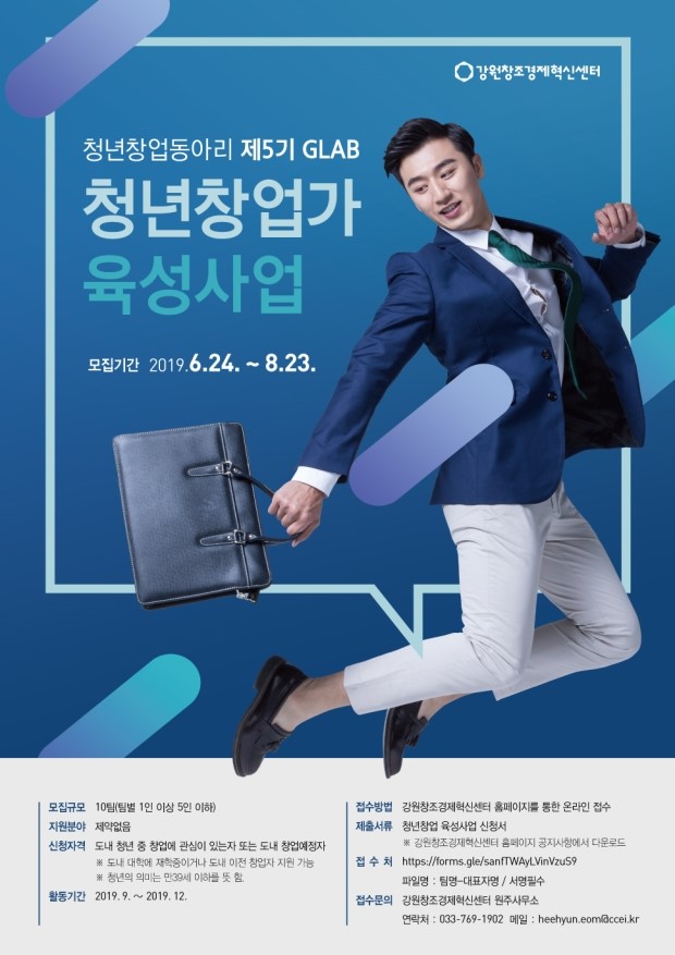 강원창조경제혁신센터 원주사무소에서 창업에 관심 있는 청년들에게 성공적 창업의 기회를 제공하기 위해 청년창업가를 모집한다. 이번 사업은 창업동아리 지원사업의 일환으로 진행되는 ‘제5기 창업동아리(GLAB) 지원사업’이다.