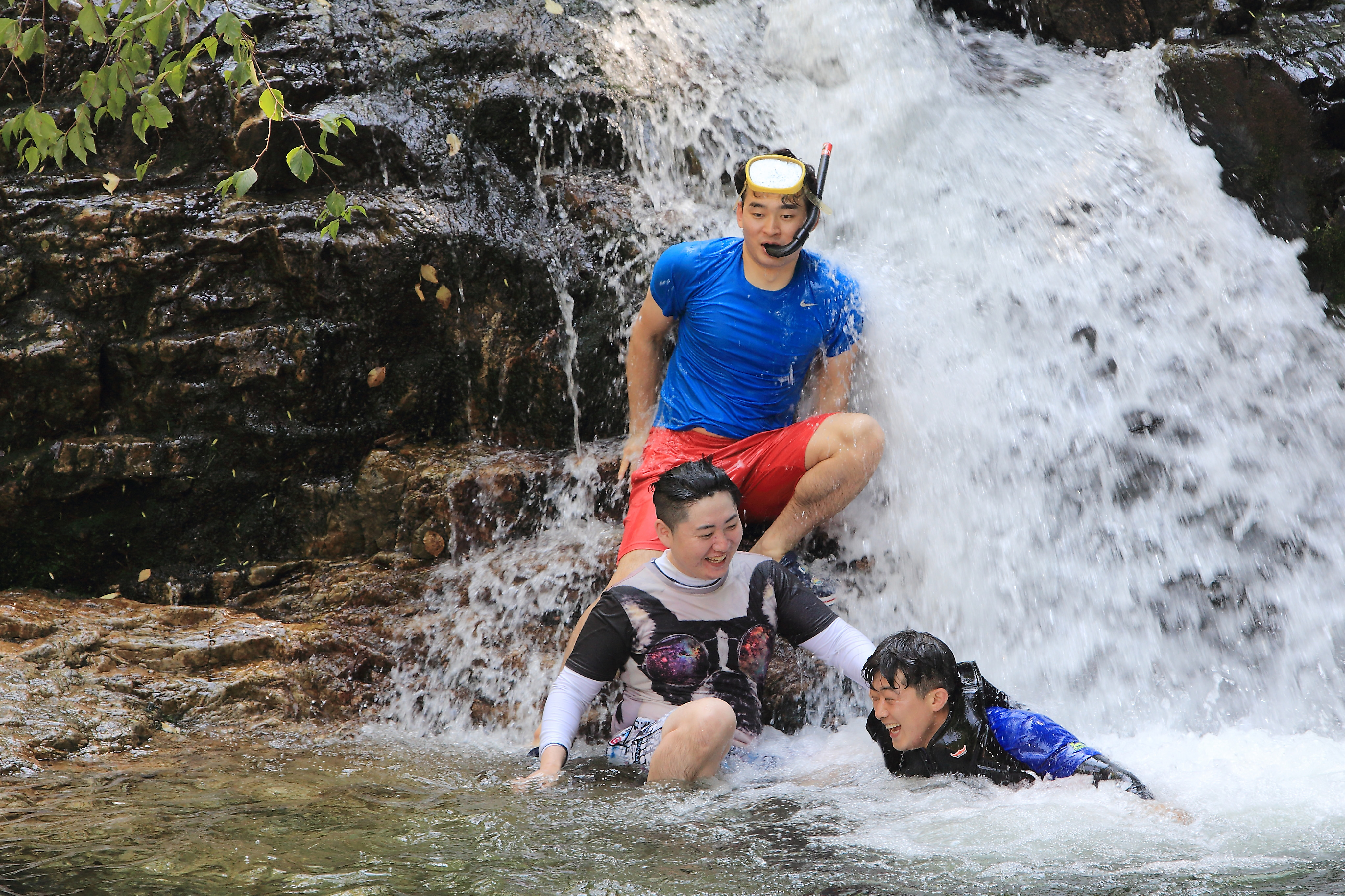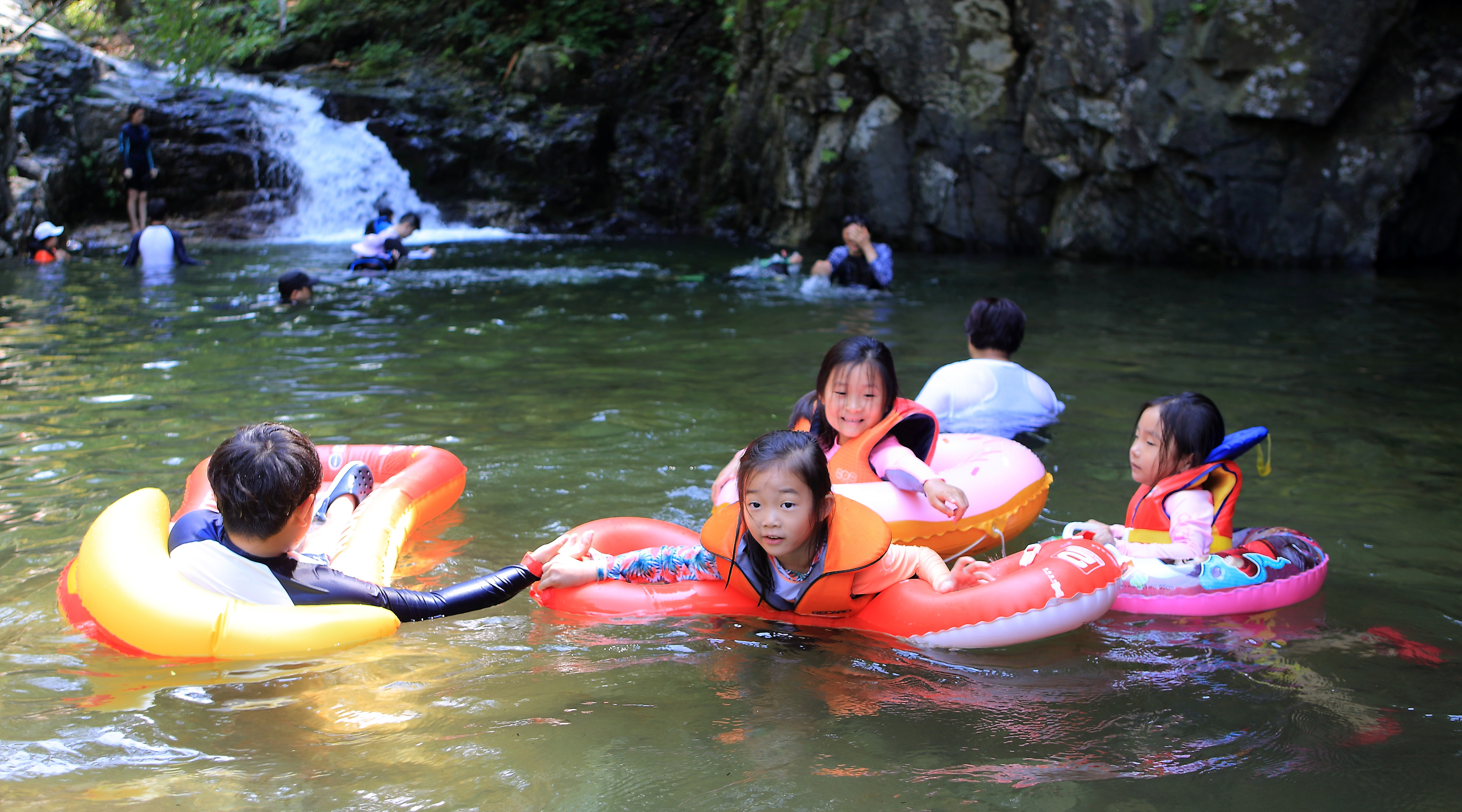 연일 폭염이 이어지는 휴가기간 인제 남면 남전리 동아실 계곡에서 여름휴가를 즐기는 피서객들이 시원한 물놀이를 즐기며 더위를 식히고 있다.