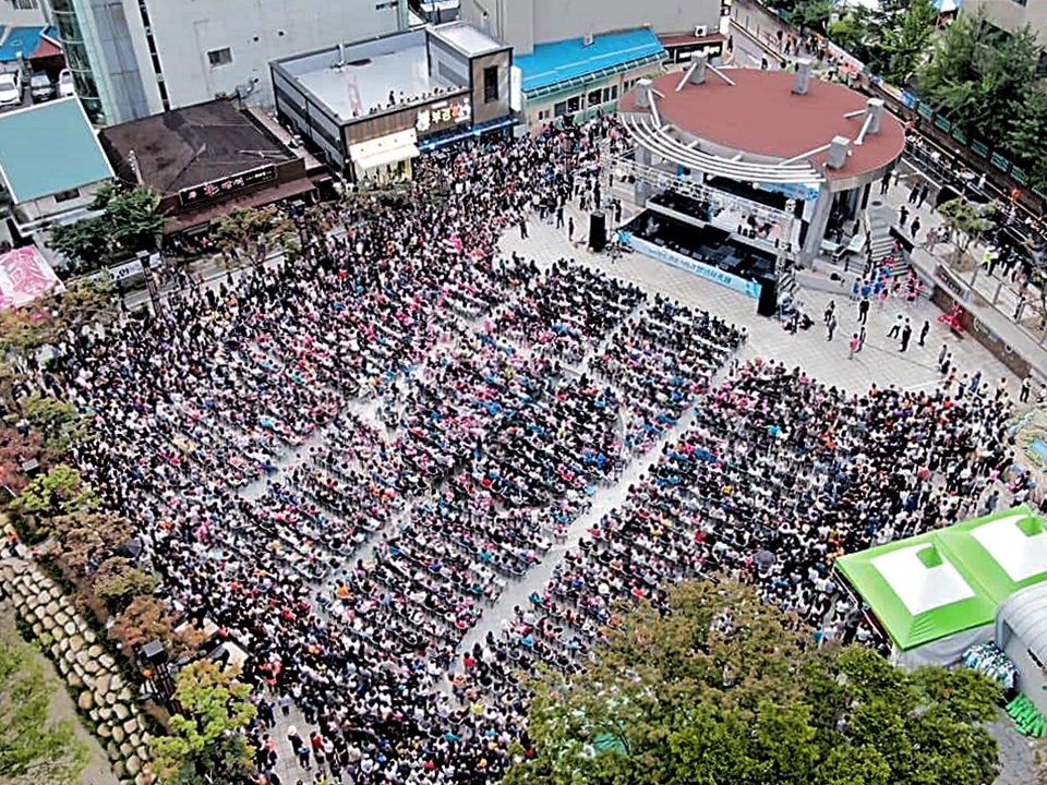 인기 콘텐츠답게 태백은 물론 이를 현장에서 직접 보기 위해 찾은 외지 관광객으로 태백문화광장이 가득 메워졌다.