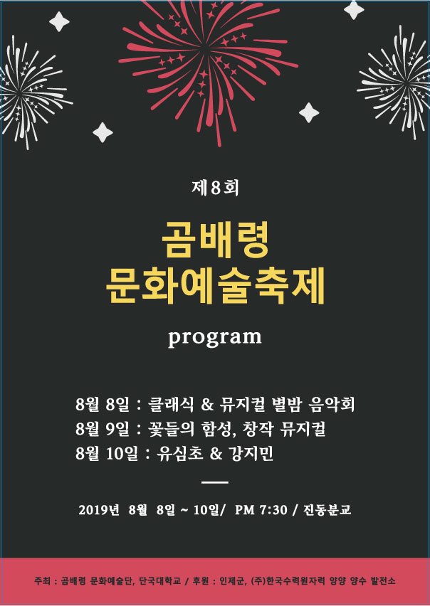 군 관계자는 “이번 축제가 인제를 찾는 관광객과 문화소외지역에 살고 있는 지역주민들에게는 문화행복의 기회를 제공하고, 매년 정기적인 문화 공연을 통해 외지 관광객들이 인제를 찾아 올 수 있도록 추진해 나가겠다.”고 밝혔다.