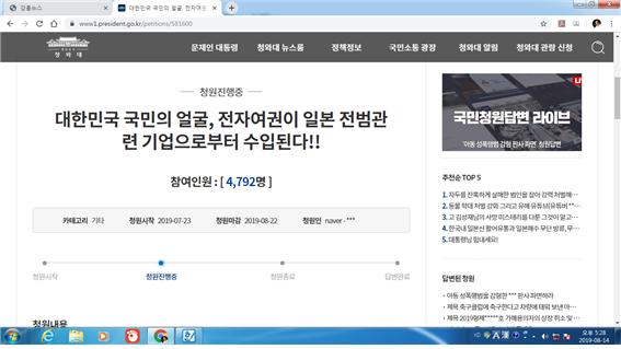현재 청와대 국민청원 게시판에 올라와 있으며 4800명정도가 동참중이다.