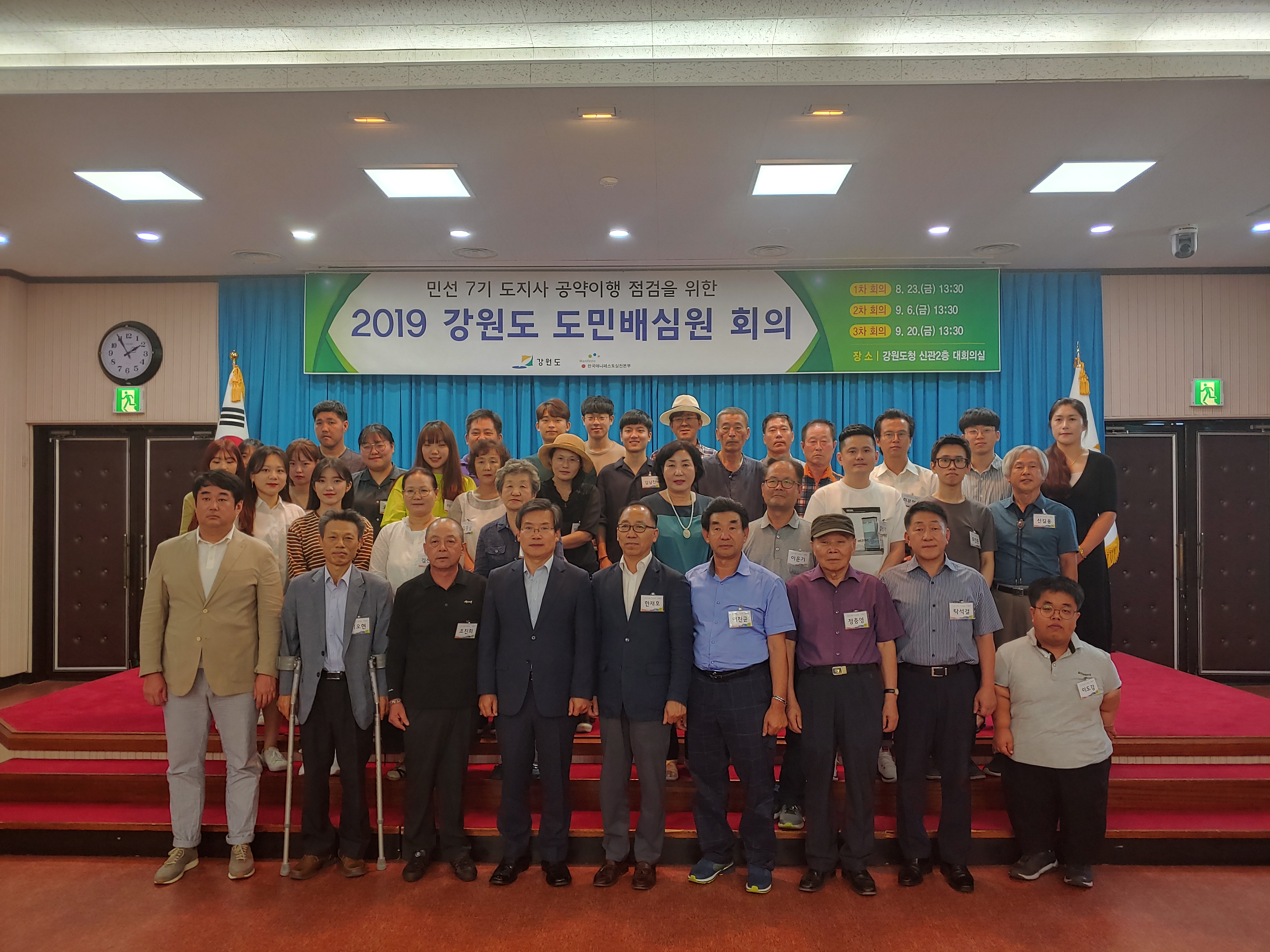 강원도는 민선 7기 최문순 도지사의 공약 사항 조정 및 추진 상황 점검을 위한 도민배심원 55명을 위촉하고 (사)한국매니페스토실천본부와 함께「도민배심원」회의를 23일 도청에서 개최했다.