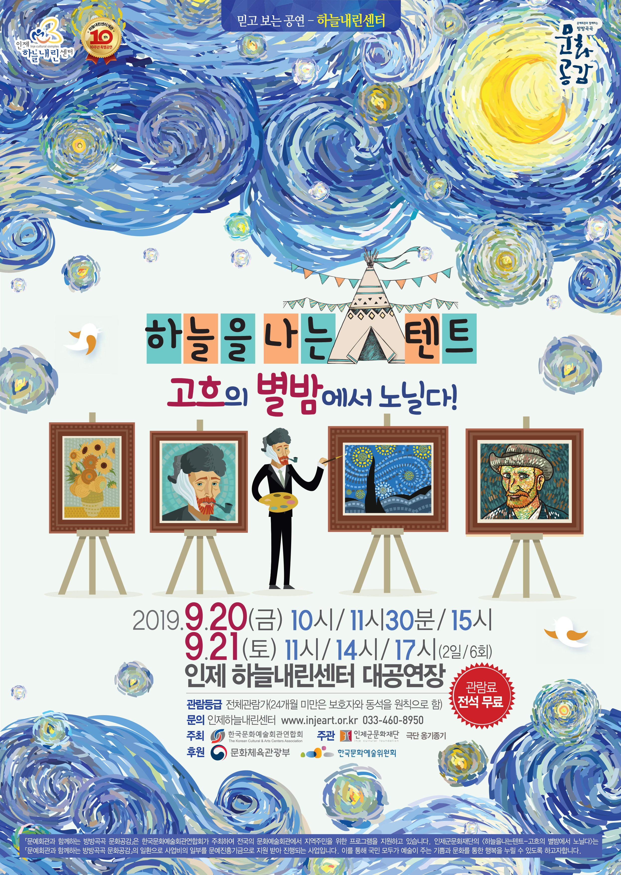 온 가족이 함께 즐기는 가족뮤지컬 ‘하늘을 나는 텐트-고흐의 별밤에서 노닐다!’가 20일과 21일 이틀 간 하늘내린센터 대공연장에서 진행된다.