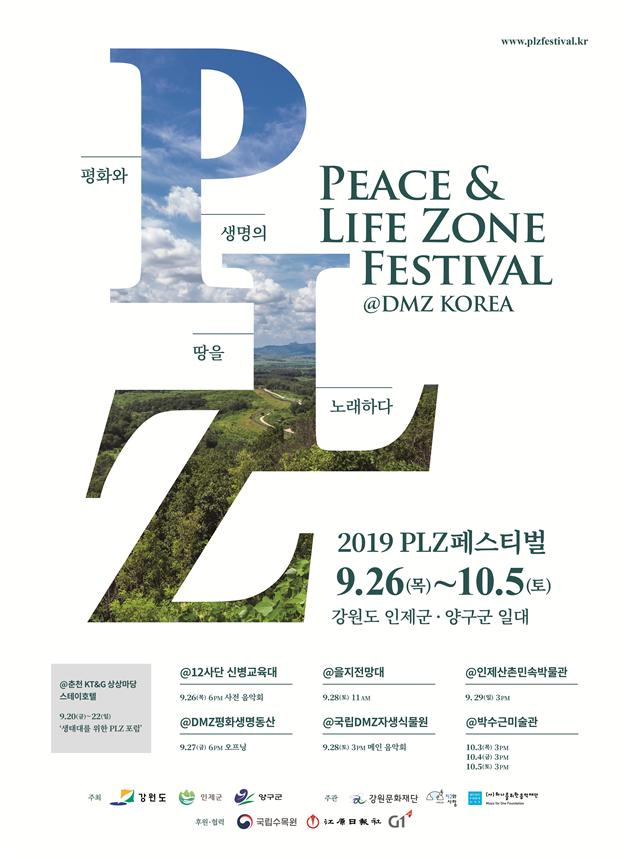 강원도에서는 2018 평창동계올림픽 레거시 프로그램의 일환으로 세계유일의 DMZ를 강원도만의 특화된 문화콘텐츠로 재조명하고, 문화공연 취약지역에서의 문화향유 기회를 확대하고자 오는 9. 20.(금) ~ 10. 5.(토) 총 10일간 춘천, 인제, 양구에서 2019 PLZ(Peace & Life Zone)페스티벌을 개최할 계획이다.