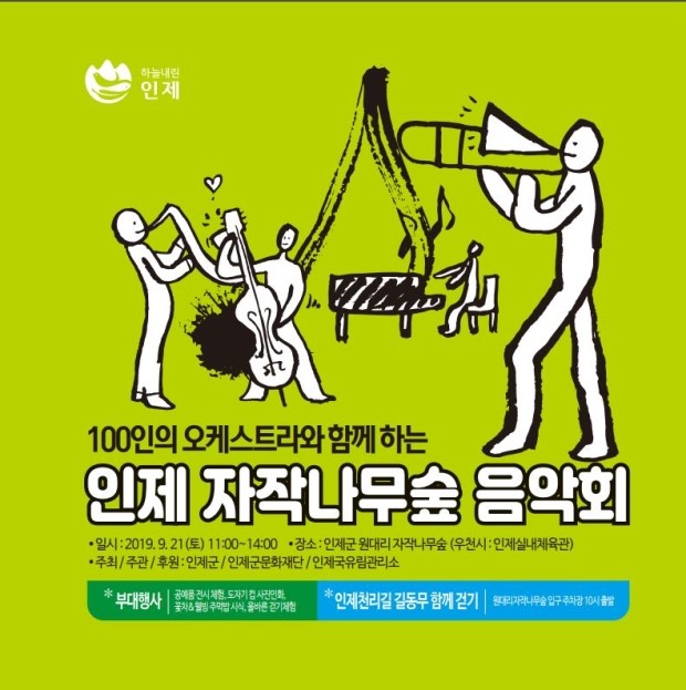 군은 오는 21일 오전 11시부터 오후 2시까지 인제읍 원대리 자작나무 숲에서 ‘100인의 오케스트라와 함께하는 인제 자작나무 숲 음악회’를 개최한다고 밝혔다.