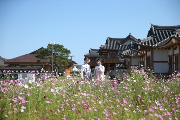 동해시가 지난 4월 산불로 일부 소실된 망상오토캠핑리조트에 관광지 경관조성을 위해 심어놓은 코스모스가 한창이다.