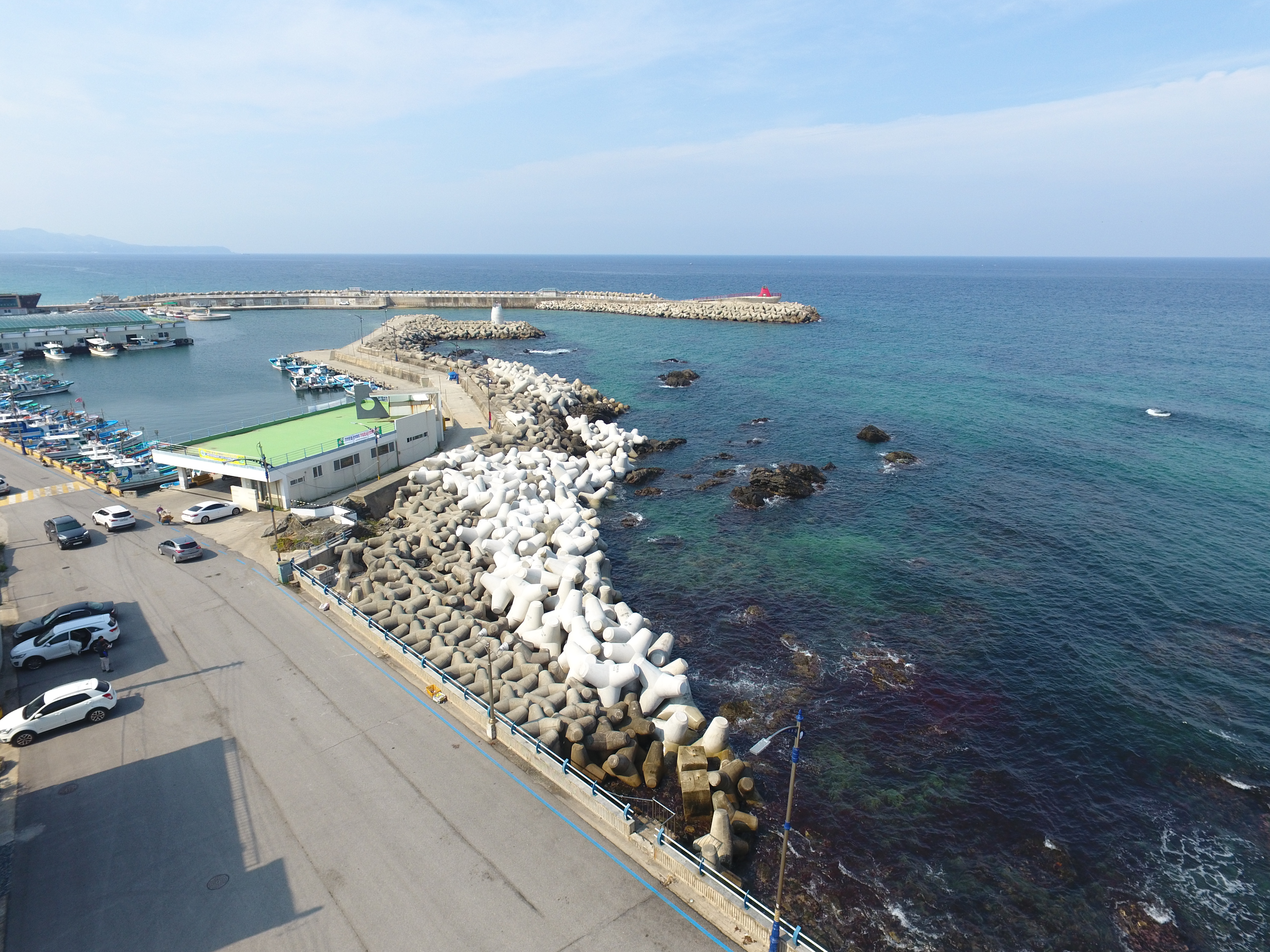 이번 사업은 기후변화로 높아진 이상 파고에 대응하기 위해 대진항 남측 방파제 52m 구간에 소파 블록(T.T.P) 189개를 추가 설치함으로써 밀려오는 파랑의 힘을 감소시켜 대진항 및 배후지의 안정성을 확보할 수 있게 되었다.