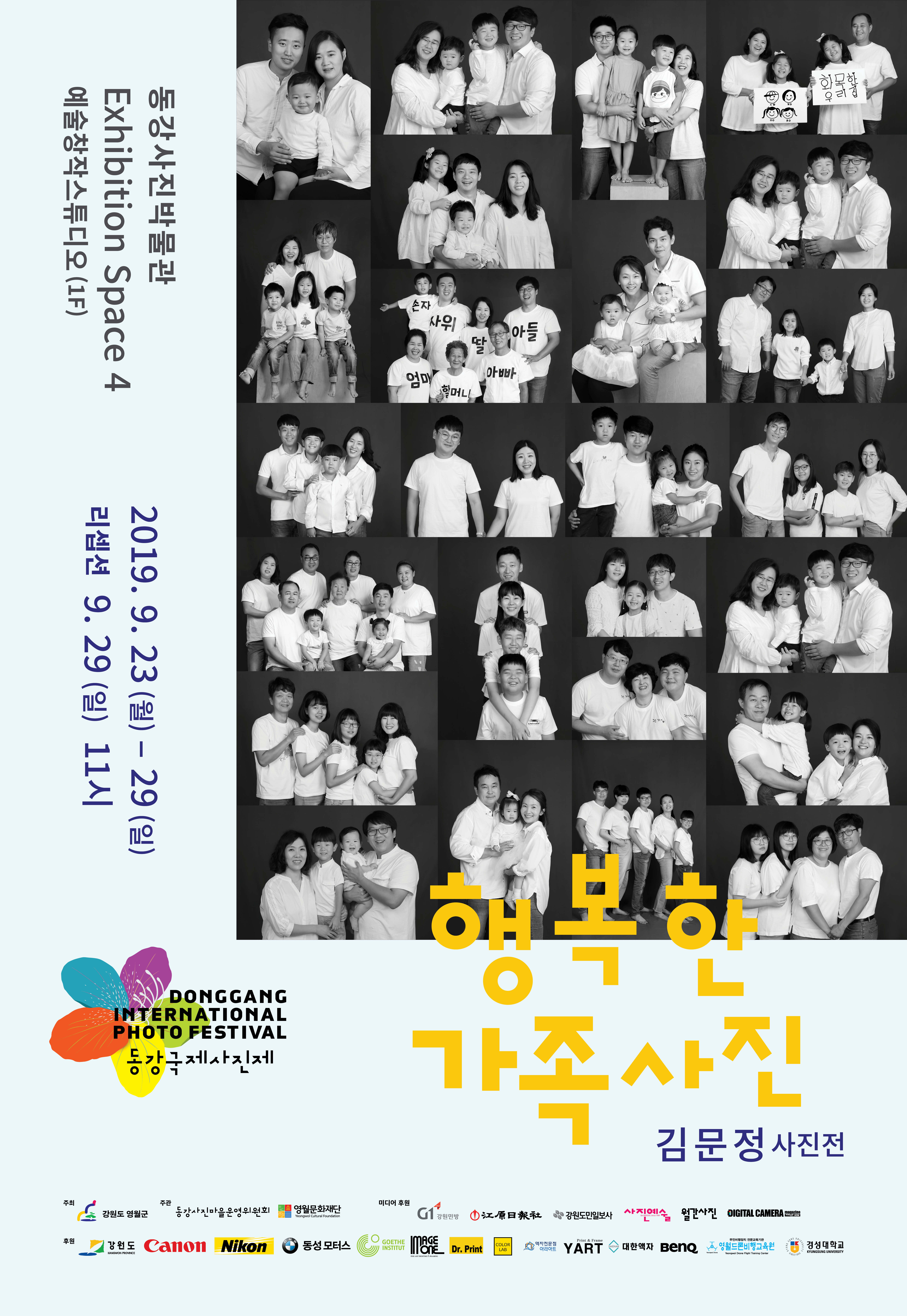 오는 9월 29일(일)까지 동강사진박물관 맞은편 영월군 예술창작스튜디오 1층 전시장에서 <행복한 가족사진-김문정 사진전>을 열고, 촬영행사에 참여한 25가족 105명의 영월 주민들의 가족사진을 전시한다. 전시 마지막 날인 9월 29일(일) 11시에는 전시한 가족사진을 해당 가족에게 전시장에서 전달하는 행사도 가질 예정이다.