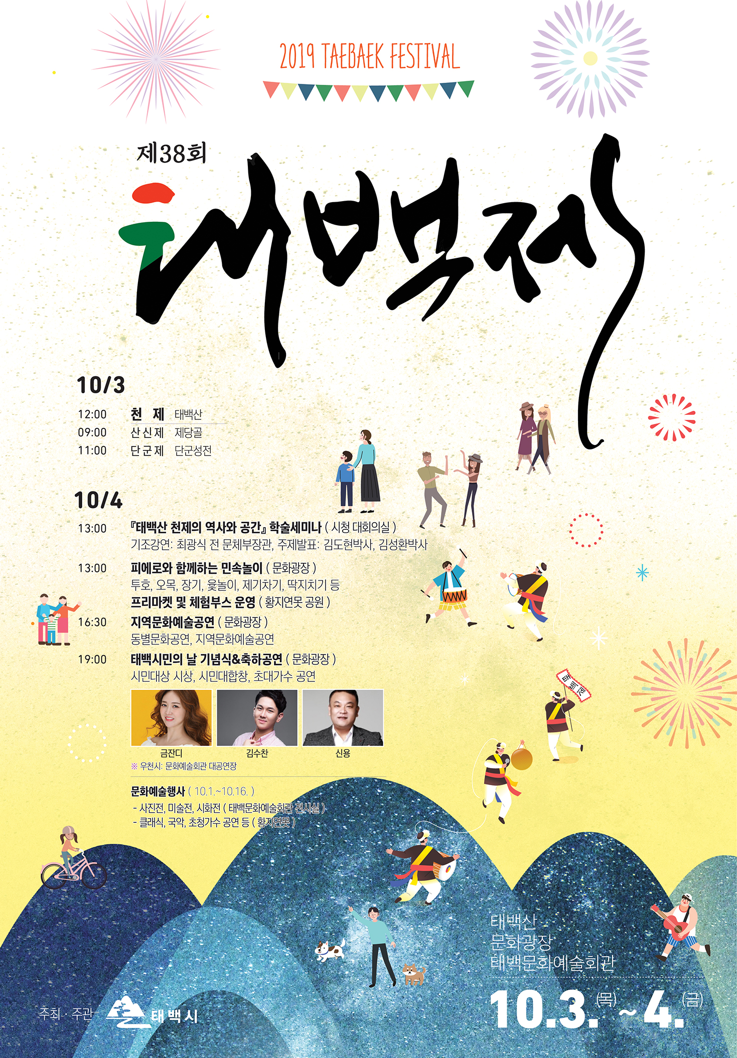 지역 민속 문화 계승‧발전과 시민 소통‧화합의 장인 ‘제38회 태백제’가 오는 10월 3일(목)과 4일(금) 양일간 시내 일원에서 개최된다.