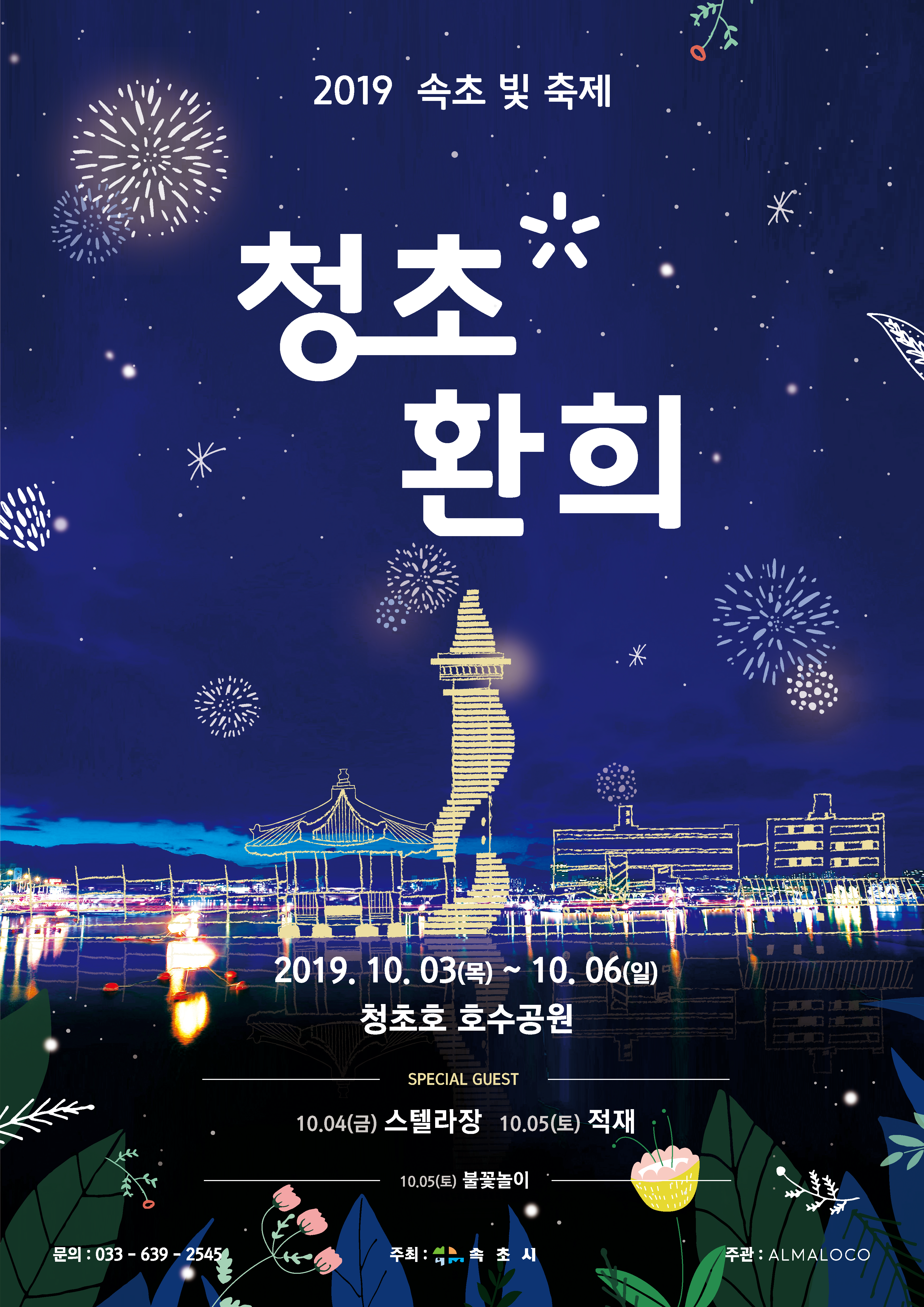 또한 올해부터는 먹거리, 체험, 프리마켓 등이 다양하게 배치되는 ‘청초상점’의 입점 부스를 속초시 관내 업체를 대상으로 공개 모집하여「2019 속초 빛 축제 ‘청초환희’」가 지역민의 다양한 참여를 통해 성장하는 축제가 될 수 있도록 하였다.