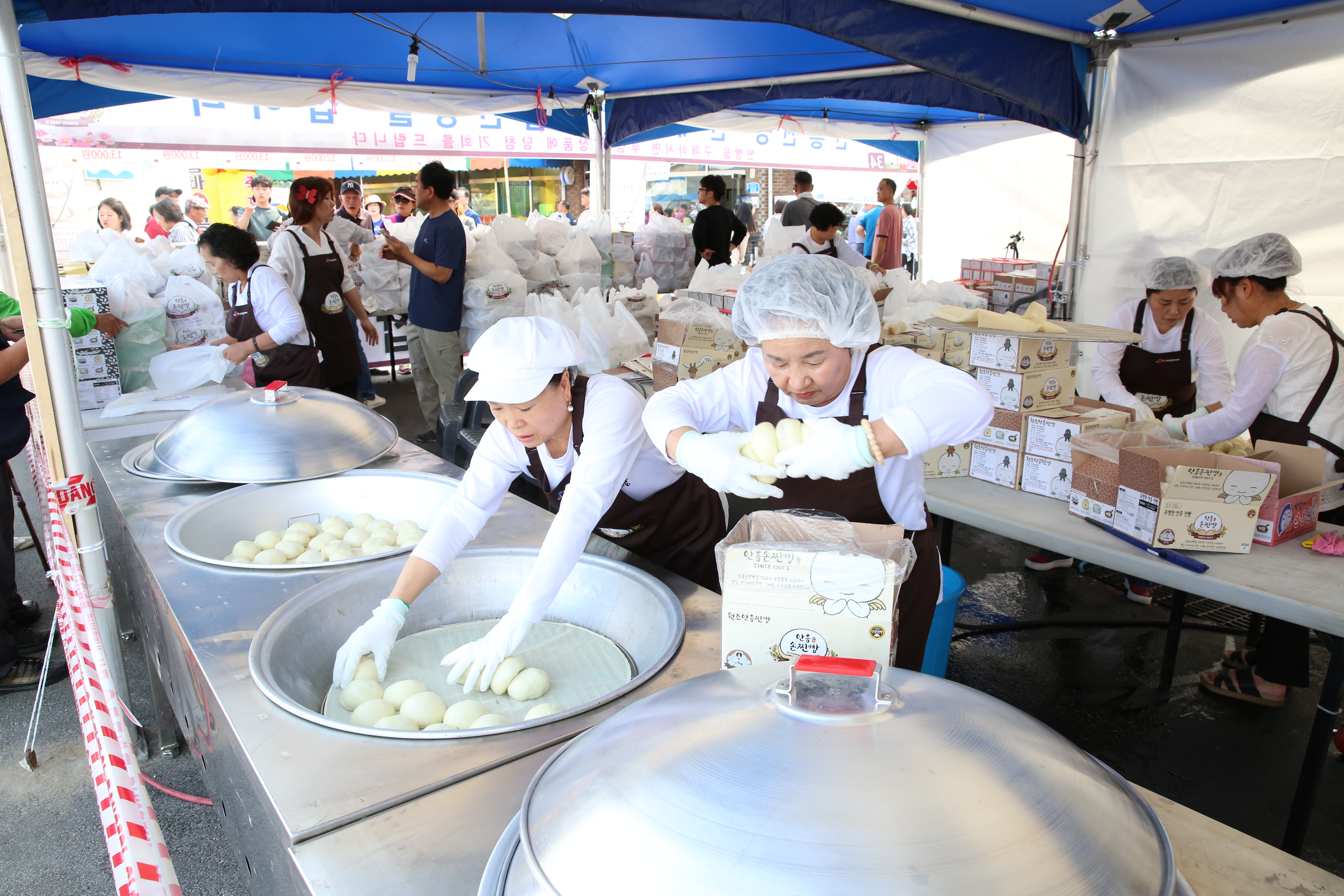 전국적으로 유명한 안흥찐빵은 축제장을 찾는 남녀노소 입맛을 사로잡으며 안흥찐빵판매장 앞에는 명성에 버금가게 연일연시 발길이 끊이지 않았다.