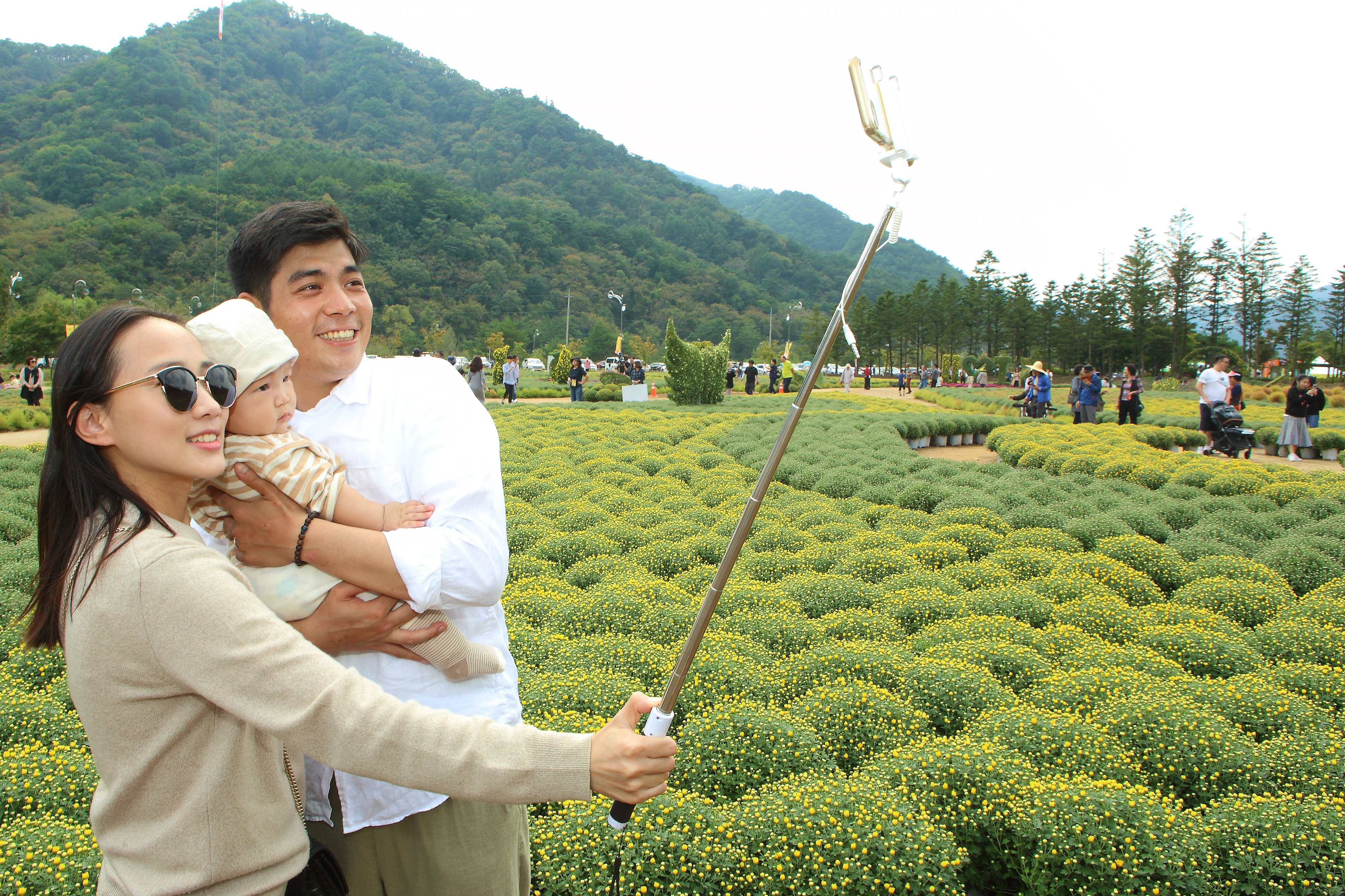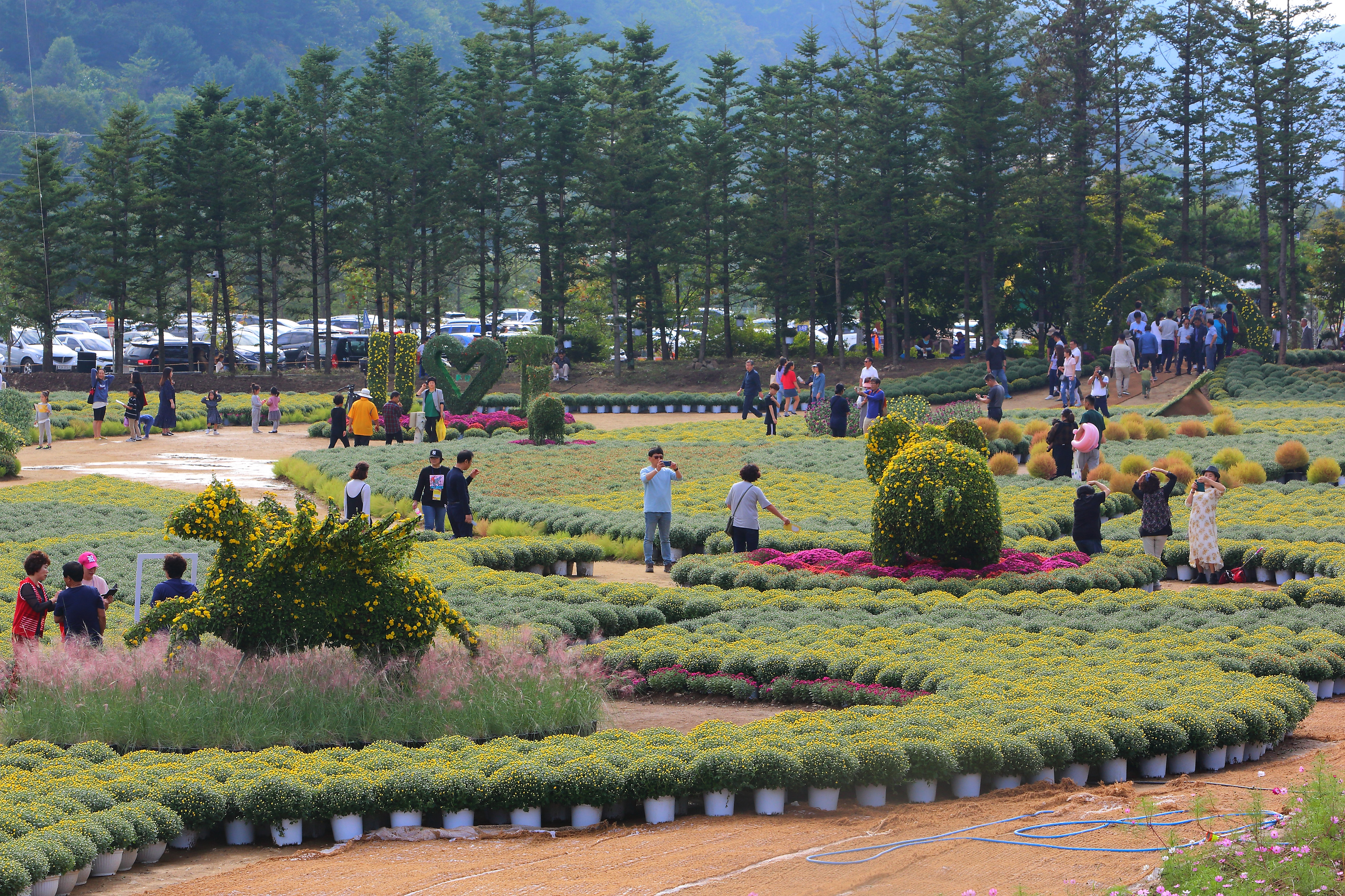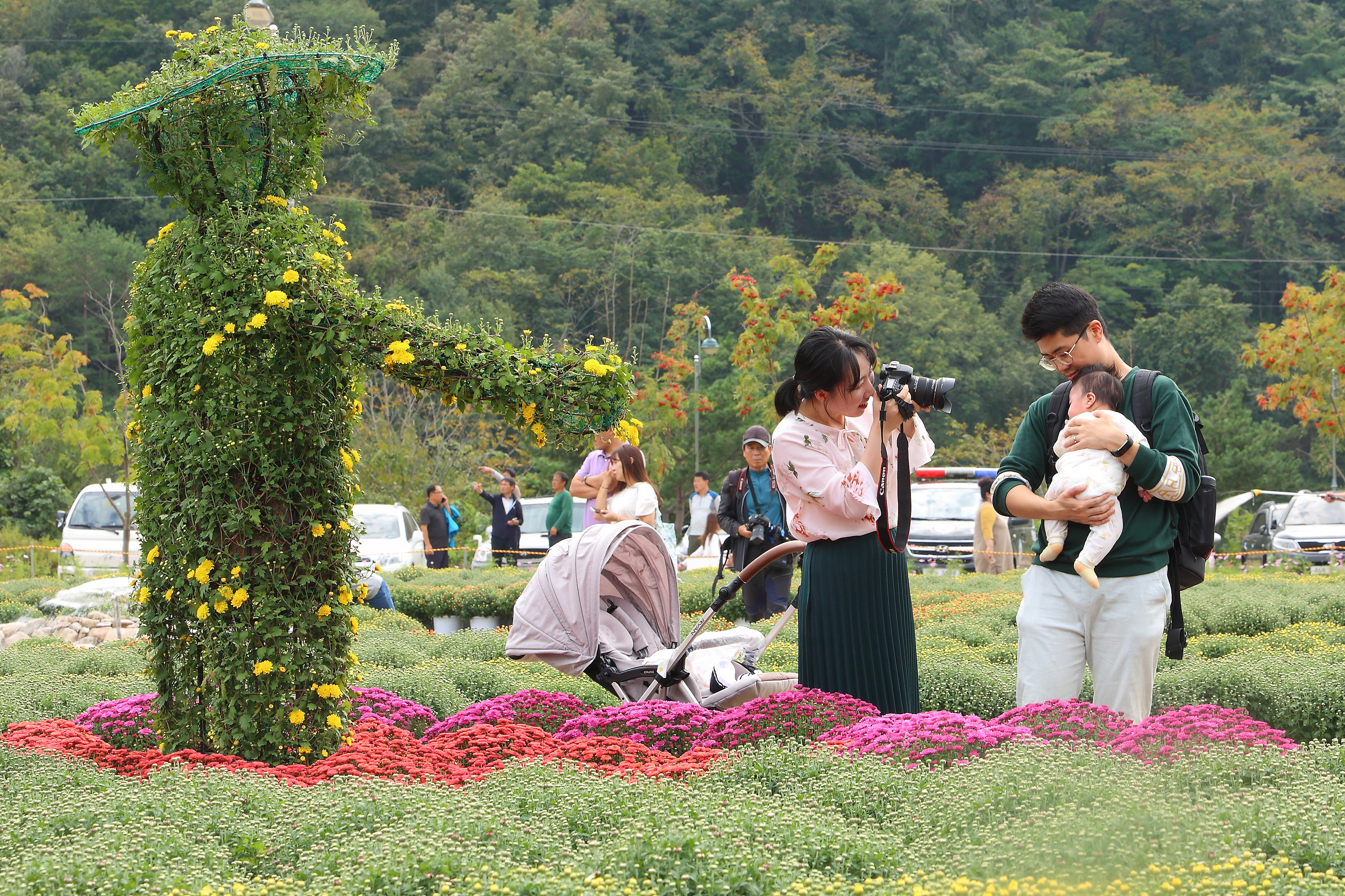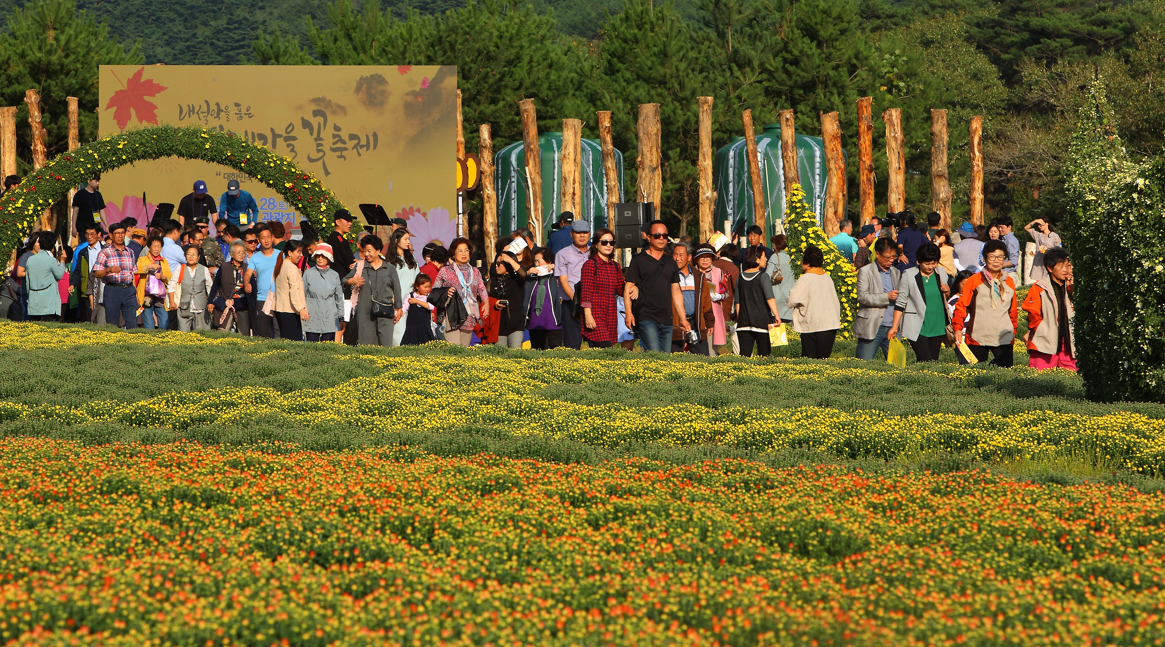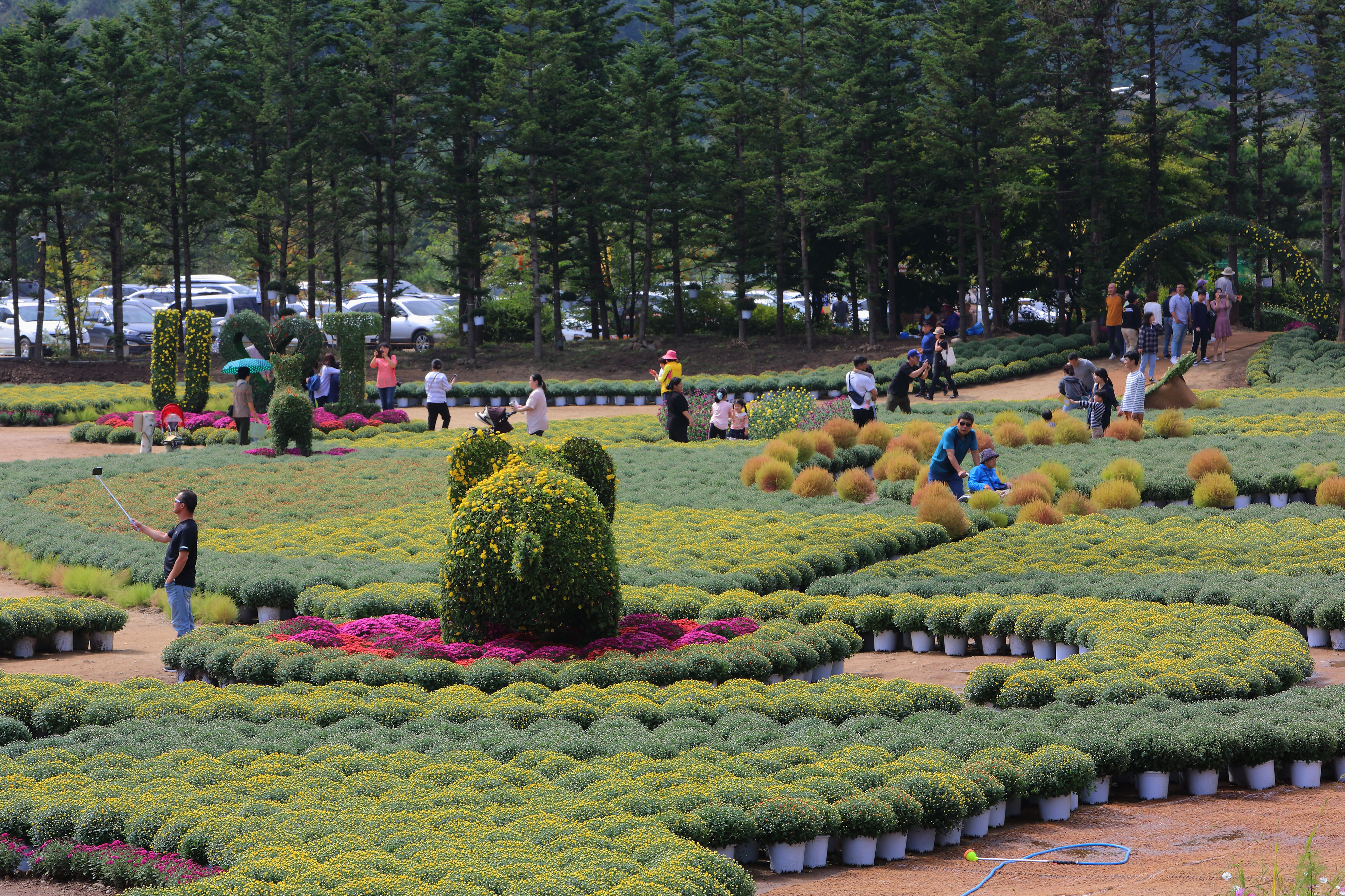 인제군 북면 용대 휴양단지 부지에 1만3천여㎥ 2만 포기의 가을 꽃 국화 밭을 찾은 가족, 연인, 친구 단위로 삼삼오오 모여 가을 꽃과 함께 추억을 렌즈에 담느라 여념이 없었다.