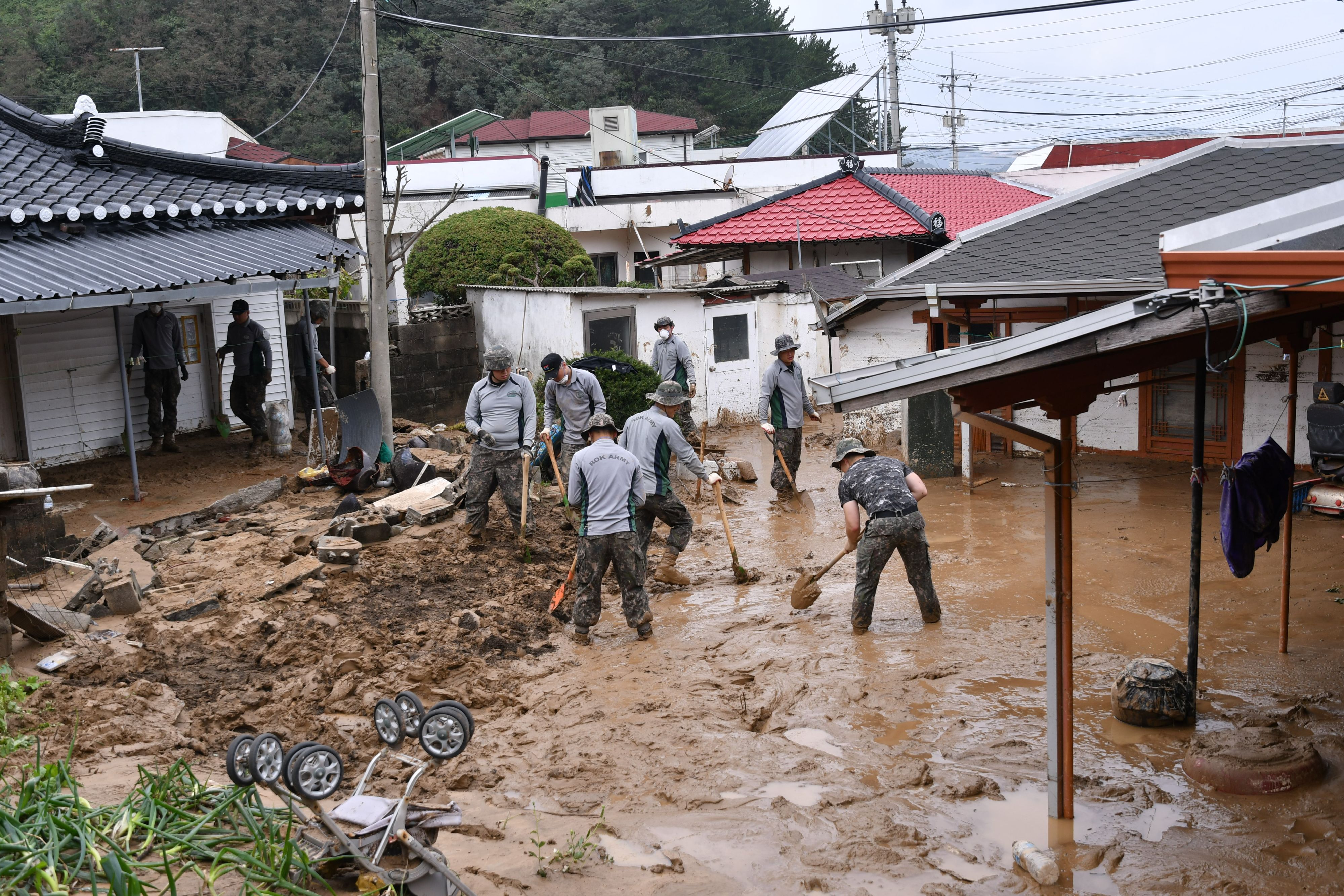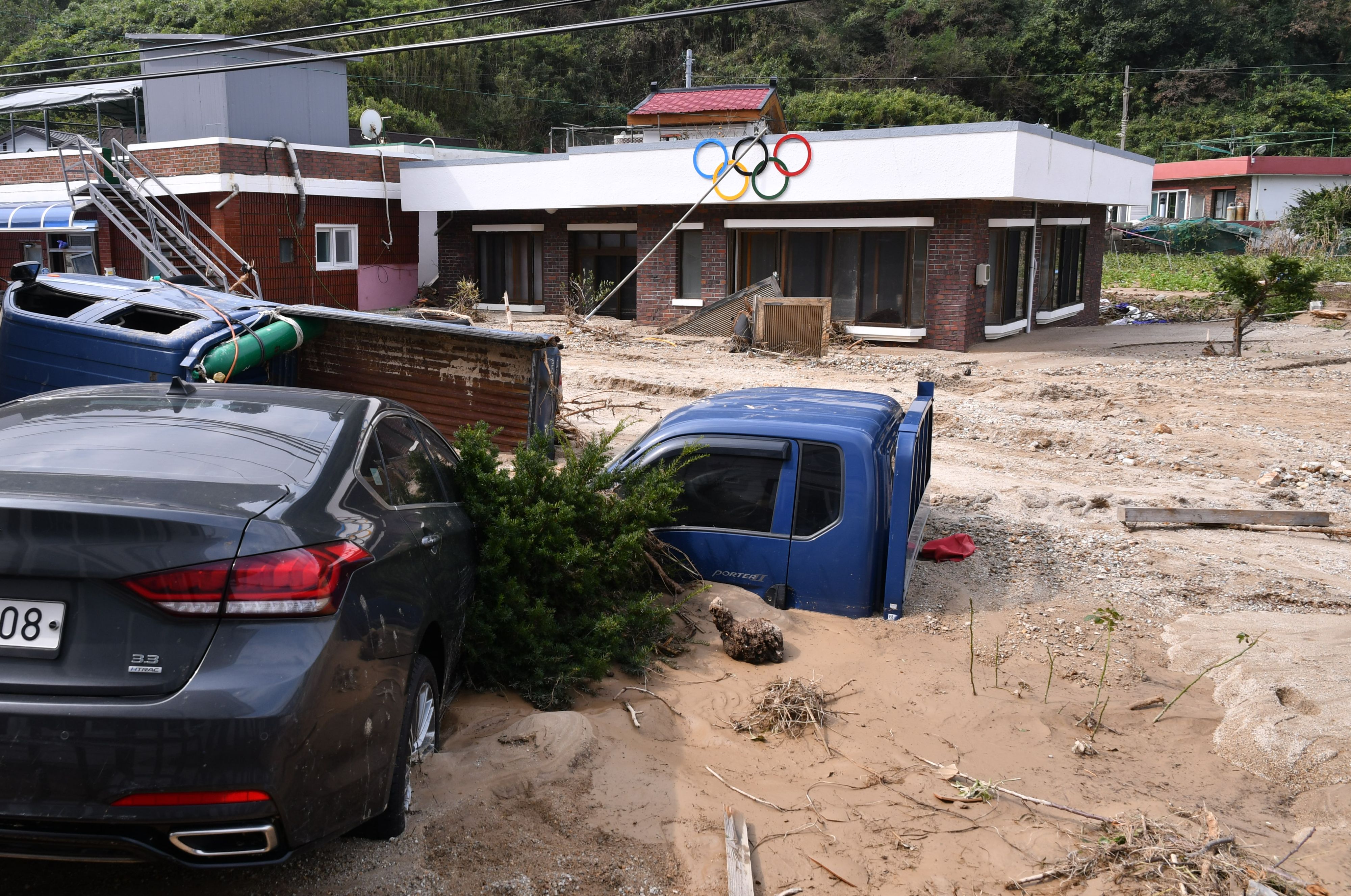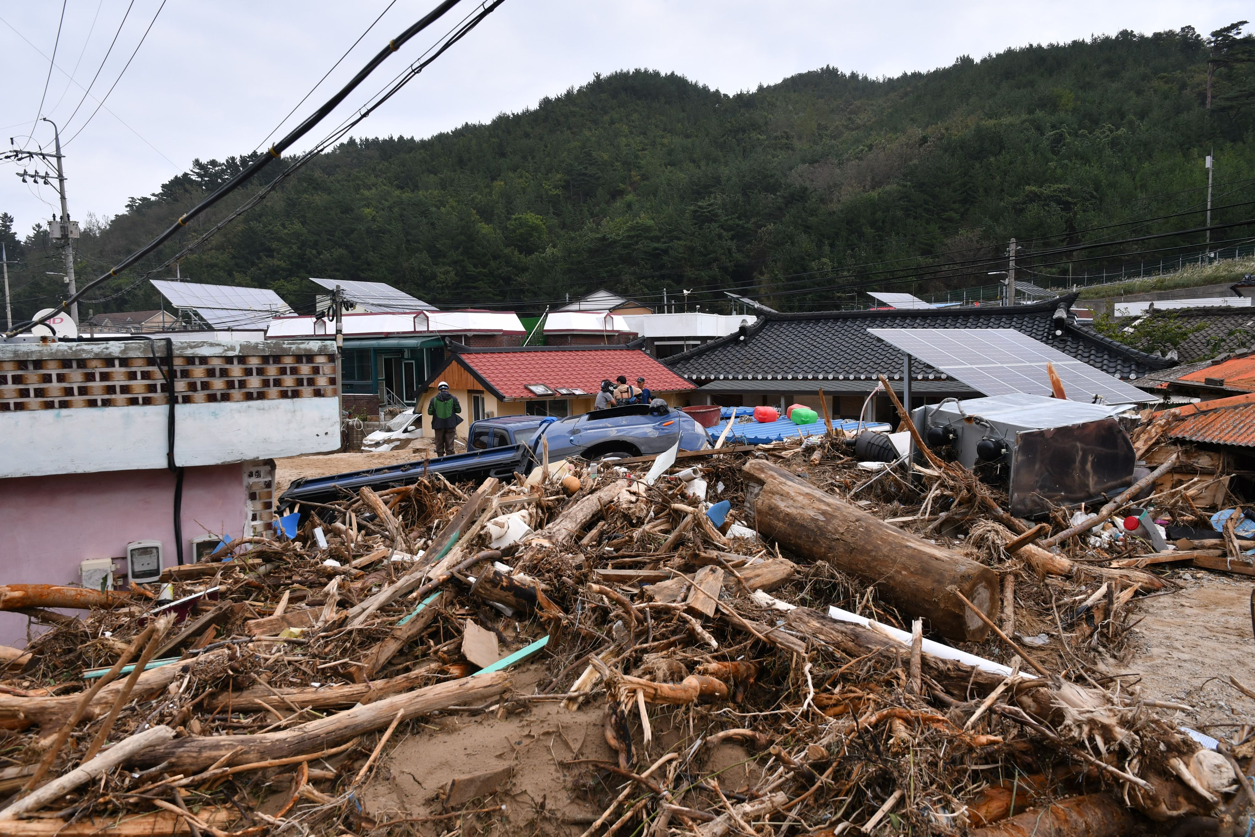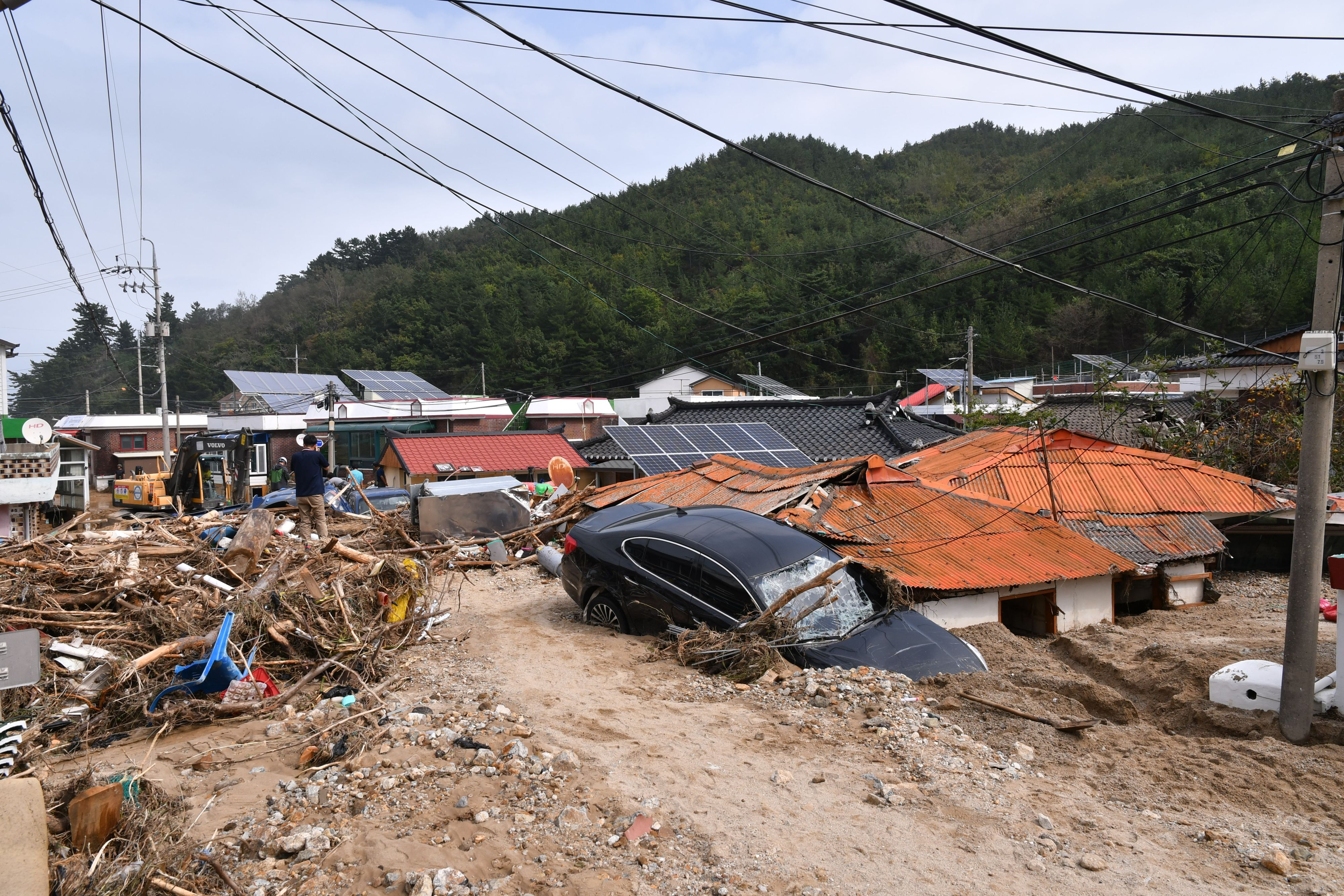 4일 오전 제18호 태풍 미탁으로 인해 강원 삼척시 근덕면 초곡마을이 토사로 뒤덮였다.