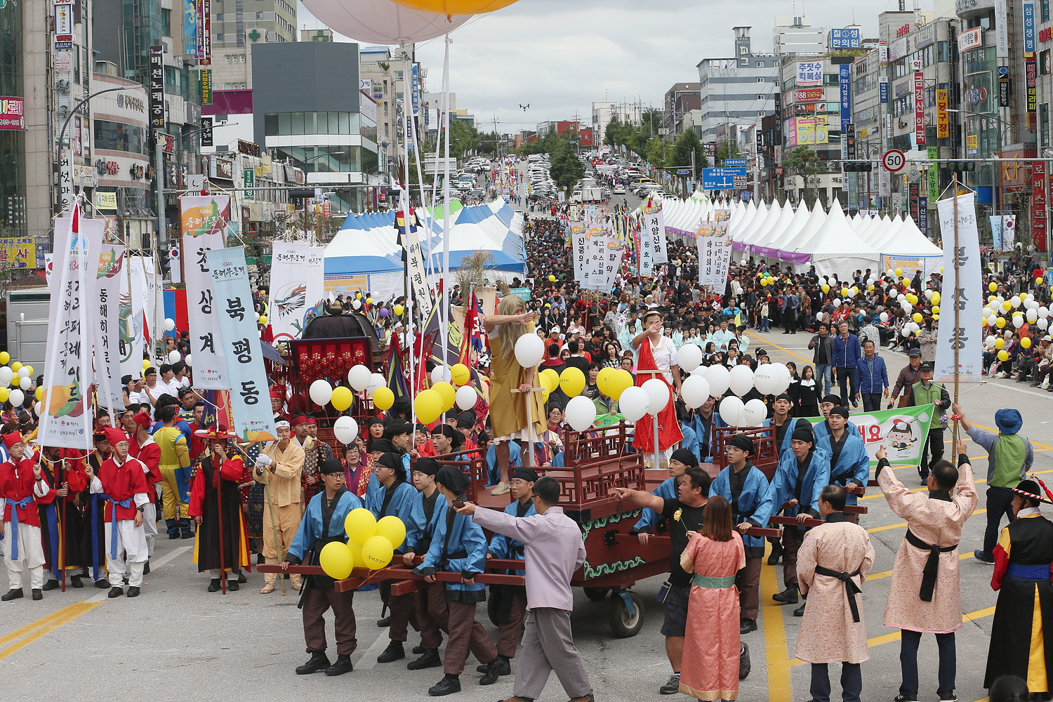 군악대 30여 명으로 이루어진 도가대를 선두로 천상계, 지상계, 해양계, 수륙재, 인간계 등의 주제 행렬단과 10개동과 시민단체로 이루어진 가장행렬단이 이색적인 광경을 연출하였다.