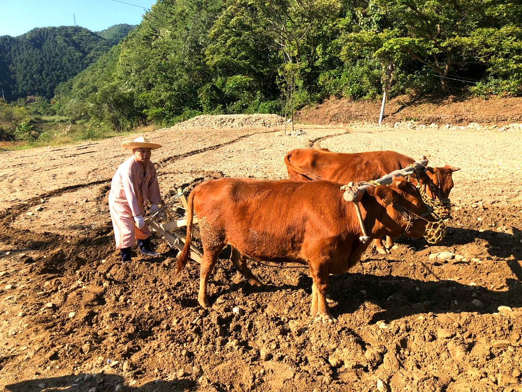 “이랴, 어서가자~ 덥지도 않고 춥지도 않으니 힘내서 어서 가자~ 안소는 제 고랑에 들어서고 마라소는 물러서거라~” 두 마리의 소로 밭을 갈고 있는 겨릿소와 구성진 밭갈애비의 겨릿소리가 홍천 가을들녁에 울린다. 강원 홍천군의 수타사농촌테마공원에서 홍천농업고등학교(교장 민병하) 학생들과 관광객들의 눈길을 끈 밭가는 겨릿소리 시연행사가 홍천 겨릿소밭가는소리 전승보존회(회장 조성근) 주관으로 지난 7일부터 9일까지 3일간 열렸다. 트렉터와 농기계에 밀려 이미 사라져버린 한국 전통농경문화인 두 마리의 소로 밭을 가는 겨릿소 풍경은 물론 코뚜레를 한 소도 찾아보기 힘든 세월에, 아직도 홍천의 한 농촌 골짜기 내촌면 물걸리 동창마을의 전덕재(78)옹은 옛 마굿간에 코뚜레를 한 겨릿소 3마리를 키우며 밭갈애비의 삶을 살아오고 있다. 이 행사에는 화촌면의 이부원(77)옹과 홍천읍의 전석순(66)씨 등을 비롯, 전덕재옹의 겨릿소를 매일 차량으로 1시간씩 고속도로로 이동해 관광객과 학생들에게 옛 전통 밭갈이소리 시연과 밭갈이 체험의 장을 마련해 눈길을 끌었다. 전덕재 밭갈애비는 “소가 들판의 풀을 먹을 줄 모르는 세월인 만큼, 겨릿소 겨리질과 그 소리들도 거의 사라진 것 같다”며 “세월도 흐르고 사람도 세월을 비껴갈 수 없듯이 책속에나 나오는 풍경들, 열심히 보고 사진 많이 찍으시라”며 가을에 흐르는 땀을 훔쳤다. 2017년 제27회 강원도민속예술축제에 ‘겨릿소 화전밭갈이 농경’ 홍천민속단으로 출전하여 겨릿소리를 하여 연기상을 수상한 전석순 밭갈애비는 “호리소는 아직 어쩌다 있지만 겨릿소는 정말 보기도 찾기도 힘들다”면서 “홍천에 겨릿소가 아직도 있다는 건 전덕재옹의 전통 농경문화에 대한 애착 때문에 가능한 일”이라며 겨릿소리를 하며 안소와 마라소를 능수능란하게 부렸다. 이제 홍천에 있는 마지막 겨릿소도, 밭갈애비들도 세월의 흔적에 밀려 보물처럼 되어버린 풍경을 연출했지만 조성근 회장은 “밭갈애비들과 겨릿소마저 세월이 좀 더 지나면 국어사전의 단어가 변천하듯 역사책에서도 영원이 사라지는 한국의 전통 농경문화가 될듯하여 안타까운 마음이며 보전해야 할 소중한 문화유산”이라고 밝혔고, 관광객들은 핸드폰으로 사진을 찍는 또다른 이색풍경으로 눈길을 끌었다. 한정복 기자 gn3369@naver.com <저작권자 © 강릉뉴스, 무단 전재 및 재배포 금지> |