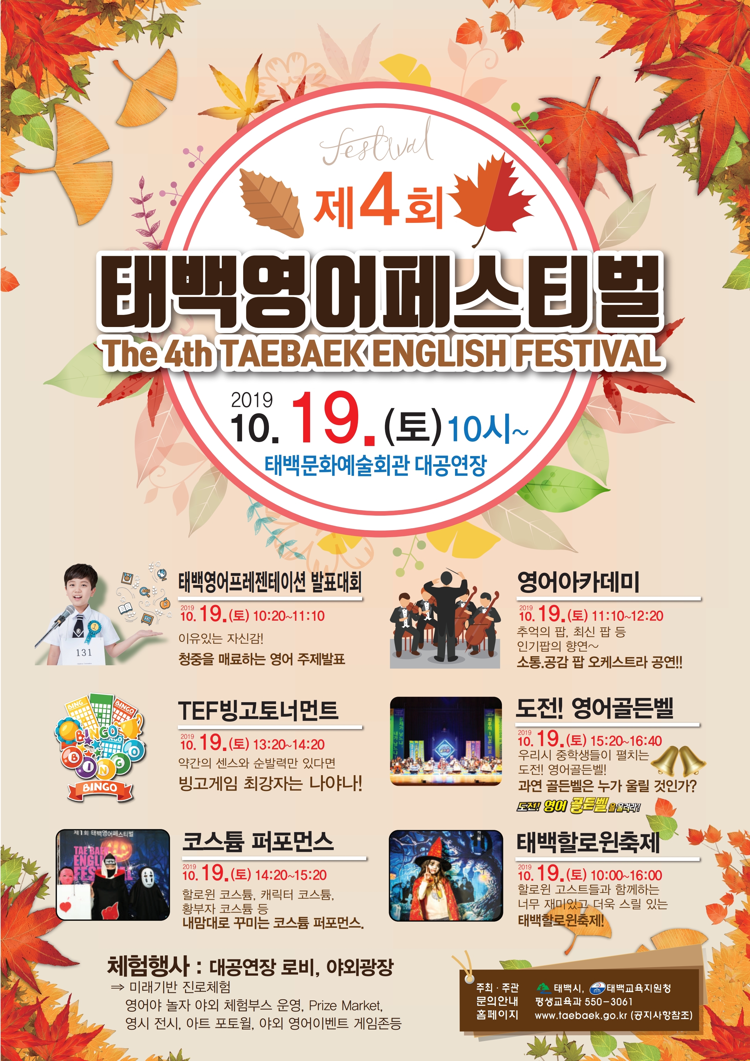 태백시가 오는 19일(토) 오전 10시 태백문화예술회관 일원에서 제4회 태백영어페스티벌을 개최한다.