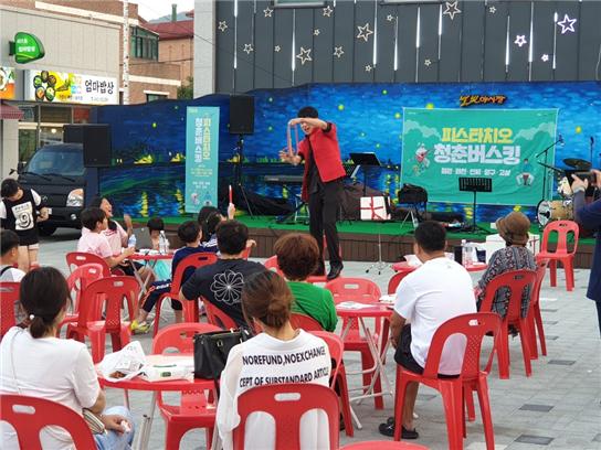 <피스타치오 청춘 버스킹>사업은 강원도가 후원하고 (재)강원문화재단이 주관하는 사업으로 평화지역 내 전통시장 활성화와 젊은 청년예술가들의 일자리 창출을 위해 지난 5월부터 운영하여 현재까지 144회의 버스킹 공연을 진행했다. 지역민들에게는 젊은 예술가들의 열정넘치는 다양한 공연을 접할 수 있는 기회가 되었고, 청년 예술가들에게는 다양한 무대 경험을 통해 차세대 전문 예술가로 발돋움 할 수 있는 계기가 되었다.
