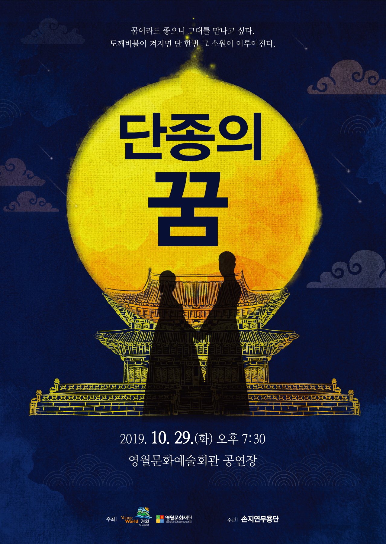 먼저, 10월 29일(화)에는 손지연무용단 주관으로 ‘단종의 꿈’을 구현한다. ‘꿈이라도 좋으니 그대를 만나고 싶다’, ‘도깨비불이 켜지면 단 한번 그 소원이 이루어진다’라는 이야기를 주제로 한다. 지역예술인들이 만들어 가는 단종의 꿈 이야기 속으로 빠져들 것으로 기대된다.