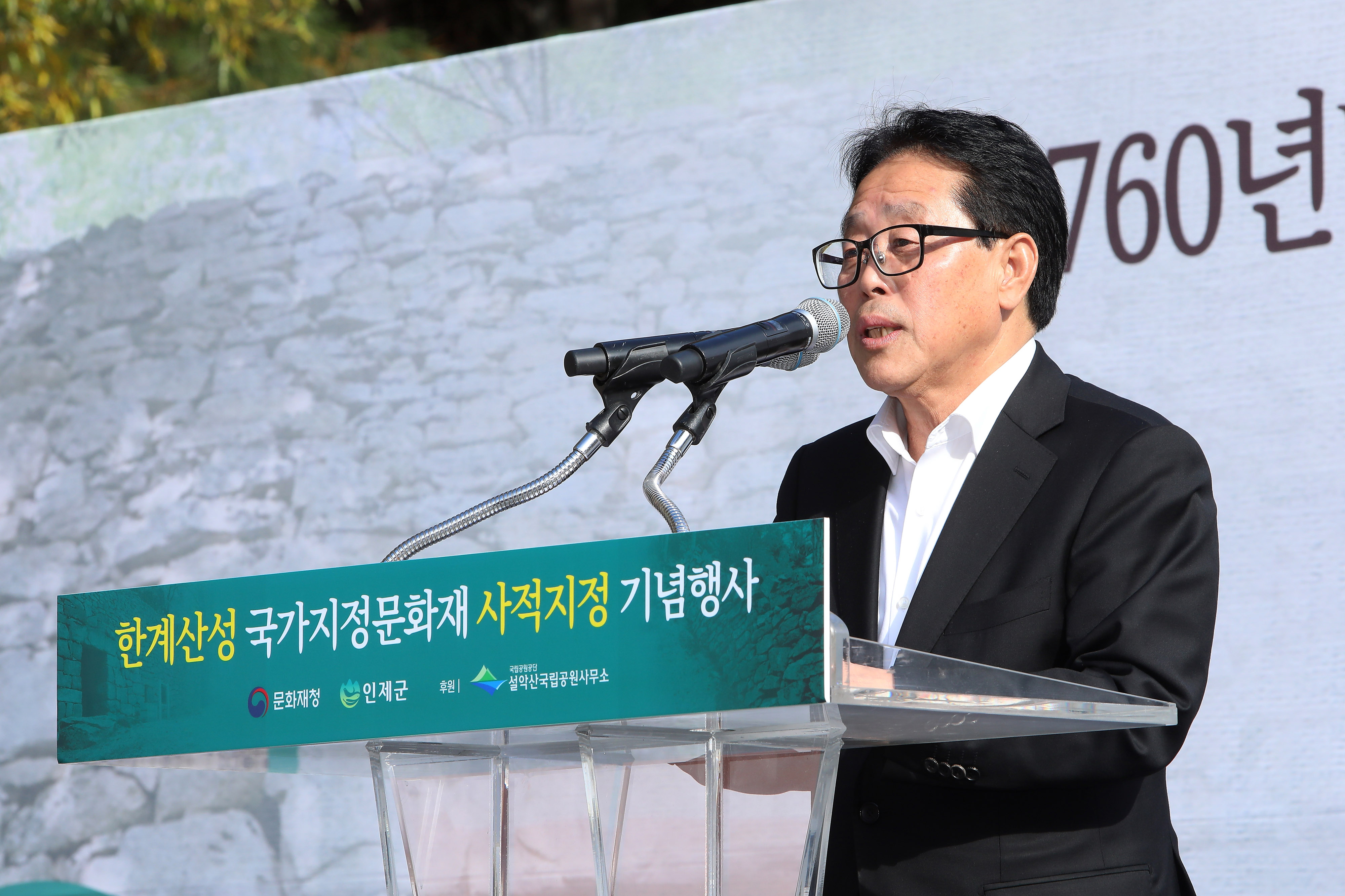 인제군은 지난 25일 국가지정문화재 사적 제553호로 지정된 한계산성의 지정기념과 홍보행사를 한계산성 및 옥녀탕 휴게소 주차장에서 가겼다.