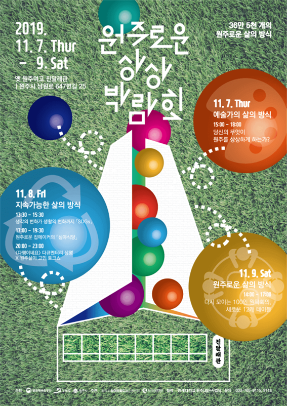 올해는 지속가능한 문화도시 원주에서의 삶을 상상하며 추진했던 사업 결과 공유와 더불어 앞으로의 삶의 방식을 제안하고 함께 만들어가는 과정을 마련하게 된다.