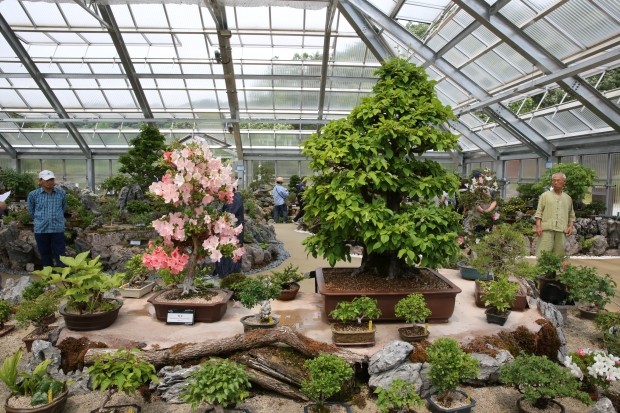 전시되는 분재는 소나무와 향나무 등 침엽수 분재 28점, 모과나무와 윤노리나무를 비롯한 활엽수 분재 32점 등 총 60점이다.