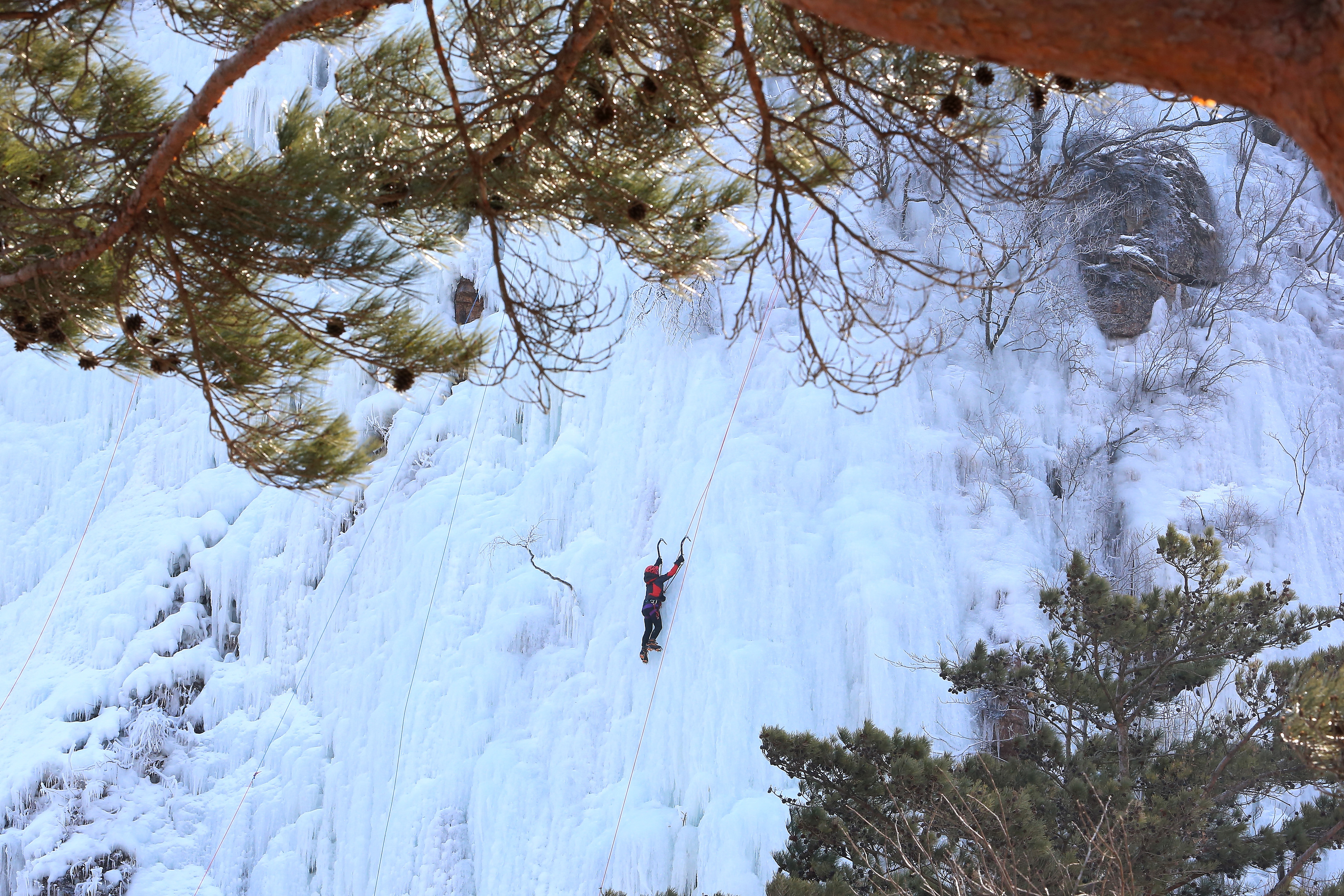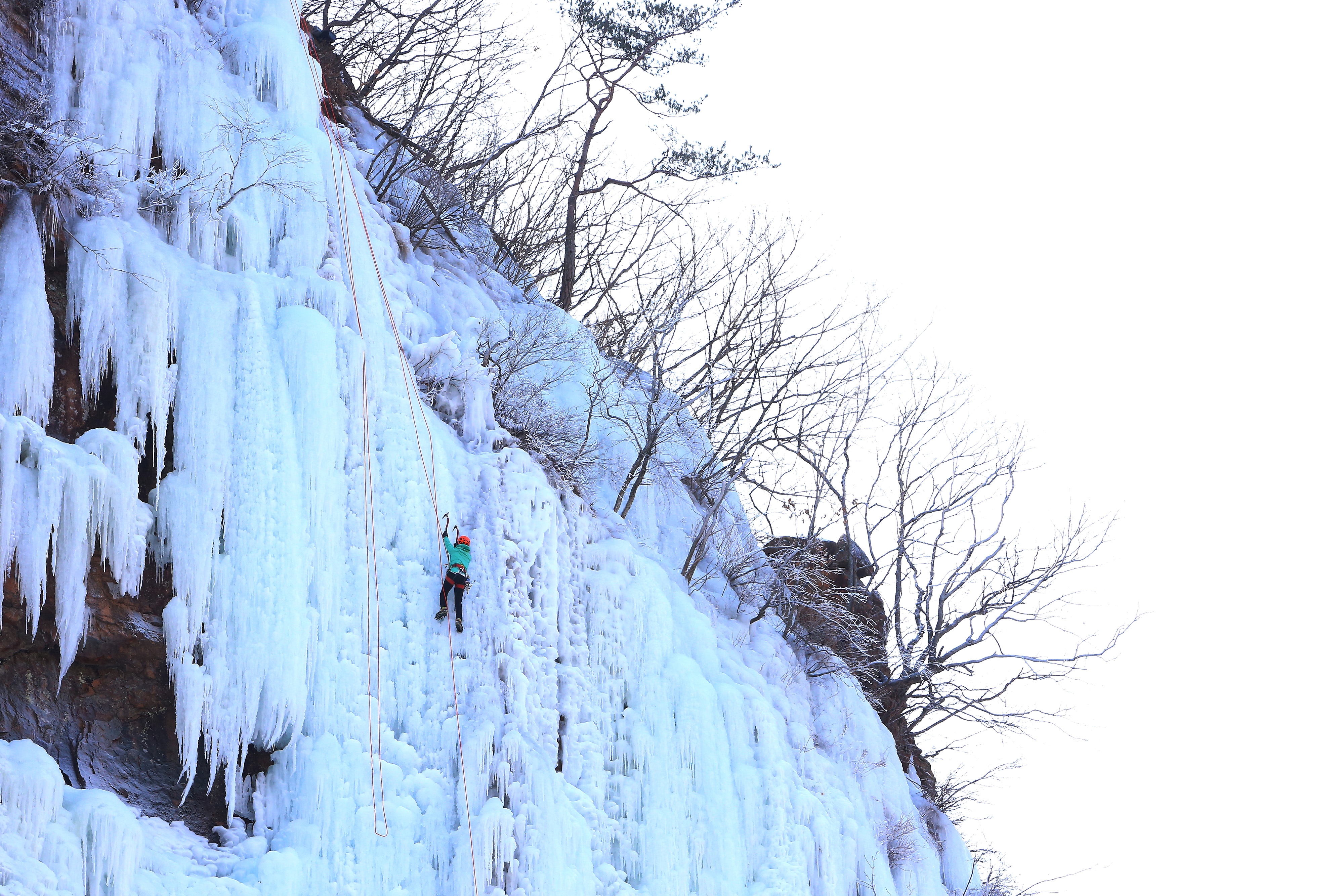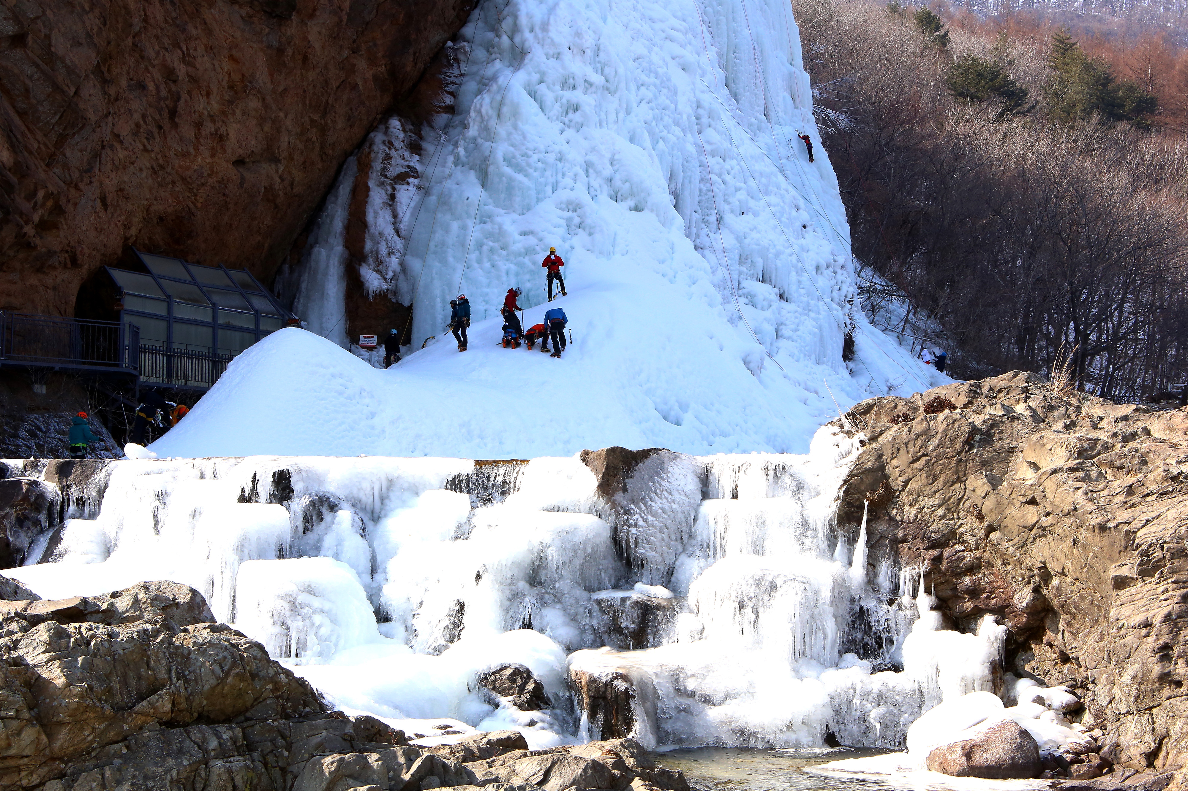 인제군 용대리 매바위 폭포가 최근 이어진 한파로 인해 거대한 빙벽을 이루며 이를 즐기기 위한 빙벽 동호인들의 발길이 이어지고 있다.