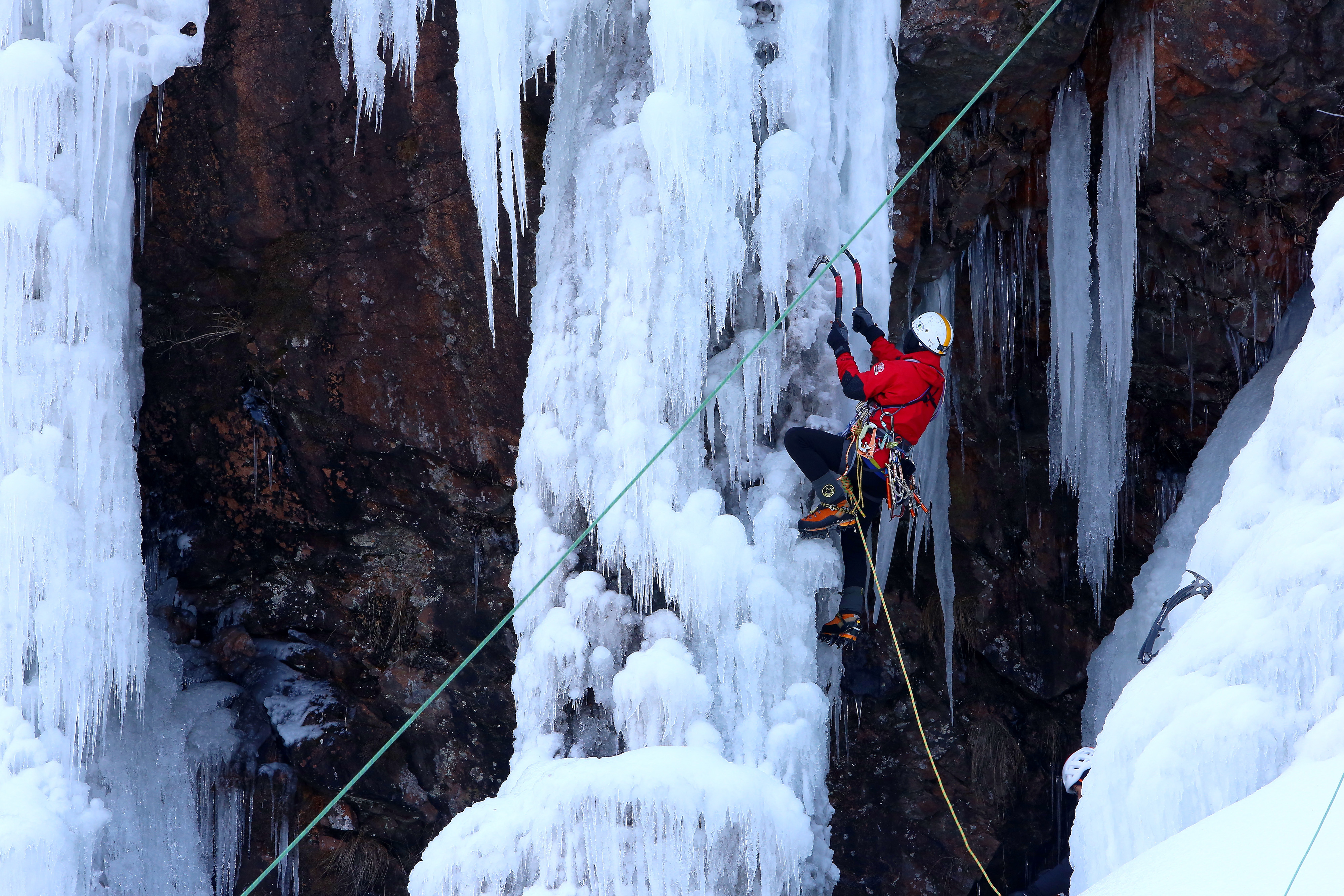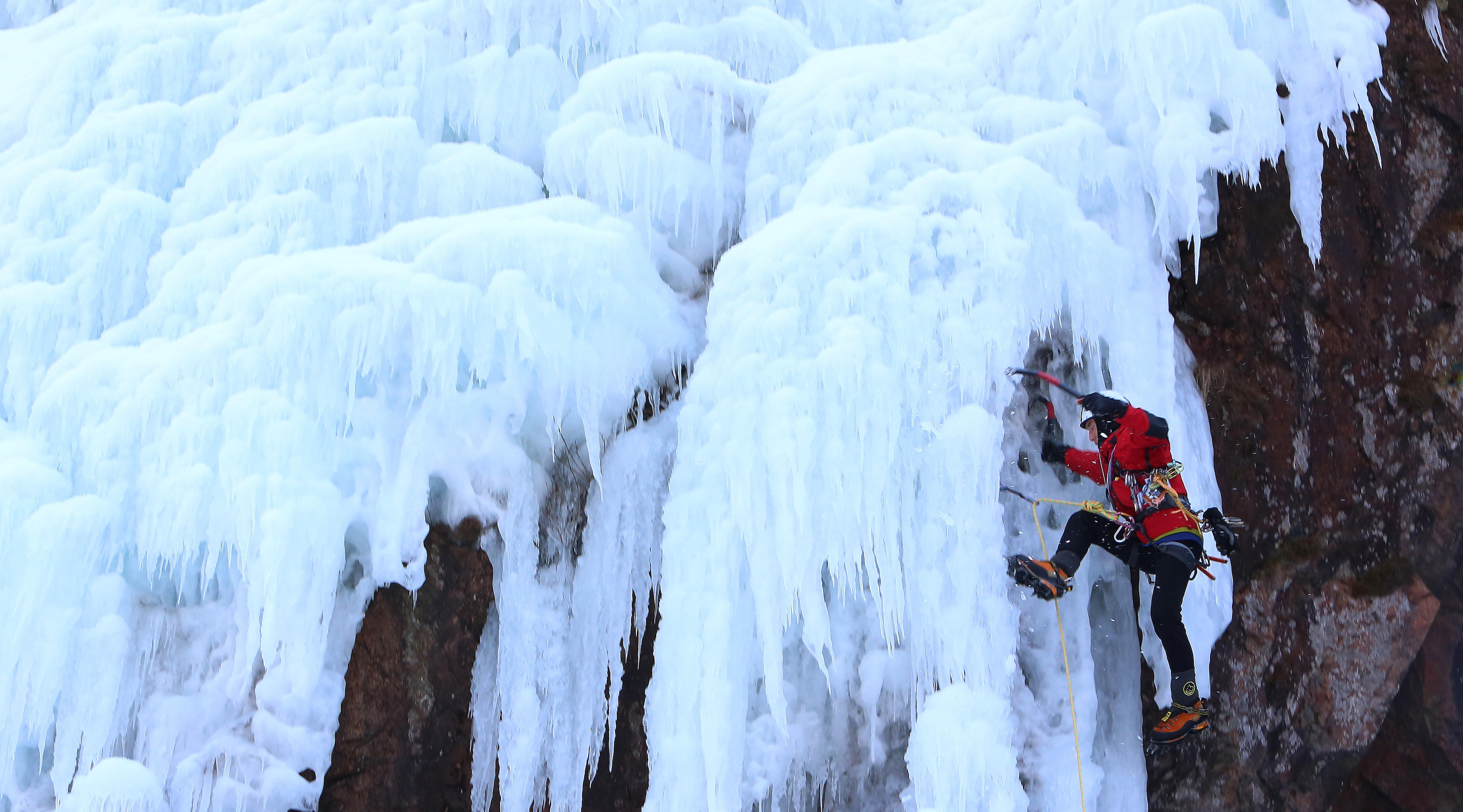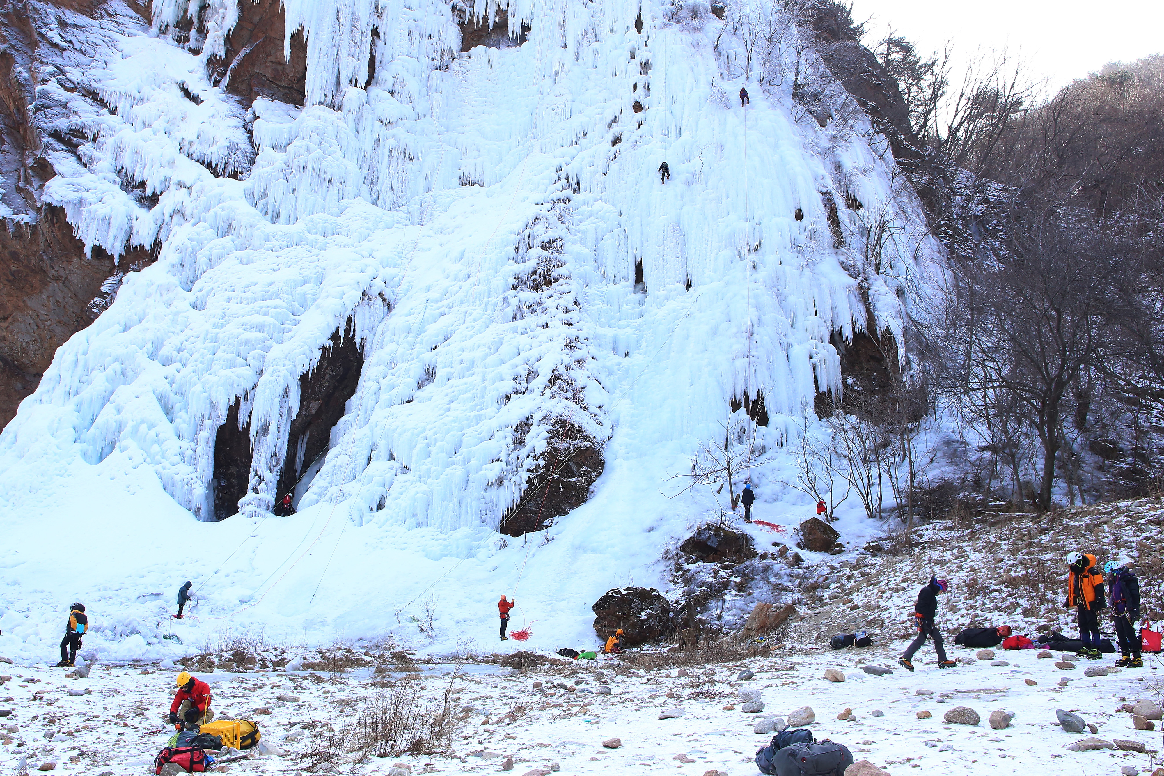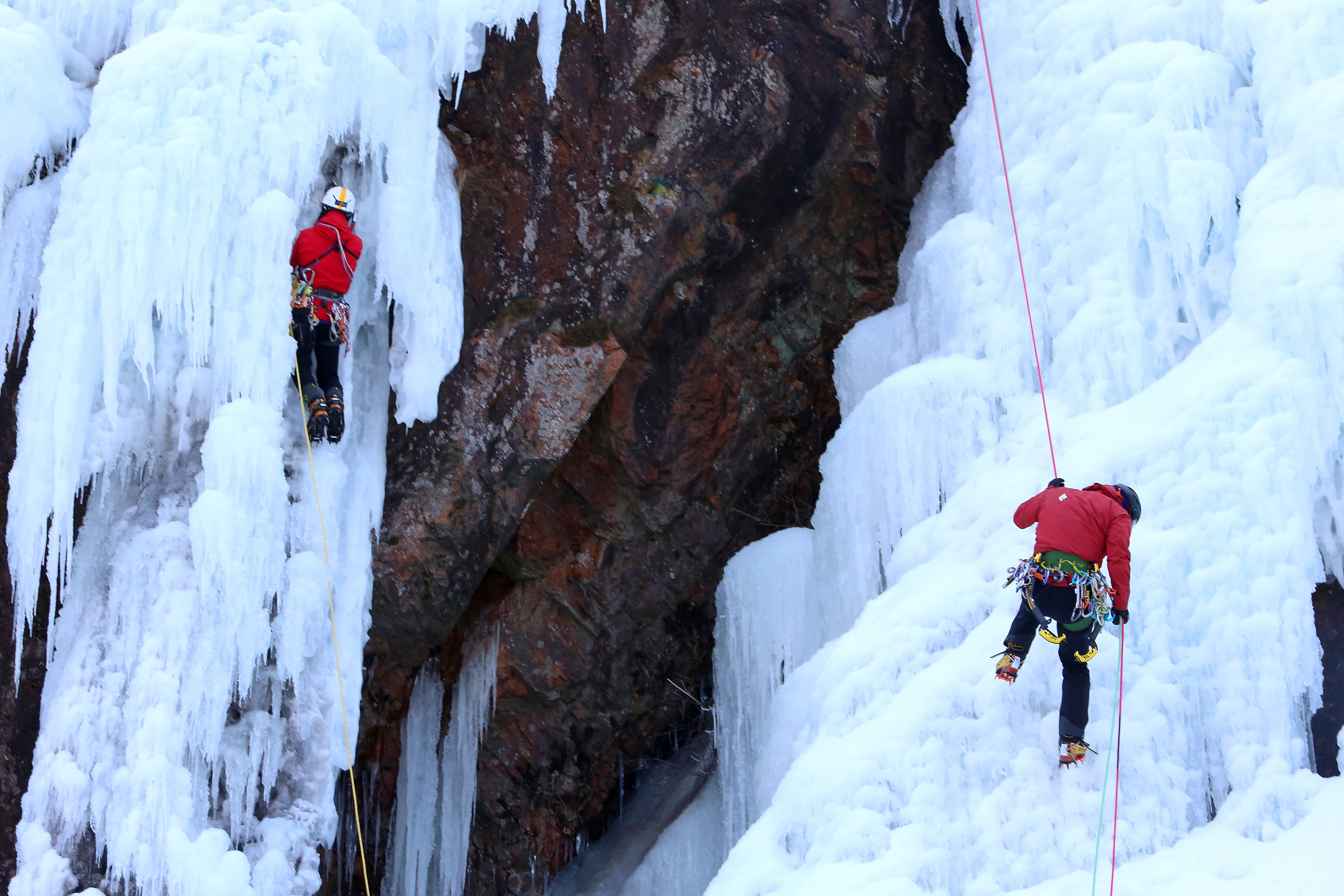 인제군 용대리 매바위 폭포가 최근 이어진 한파로 인해 거대한 빙벽을 이루며 이를 즐기기 위한 빙벽 동호인들의 발길이 이어지고 있다.