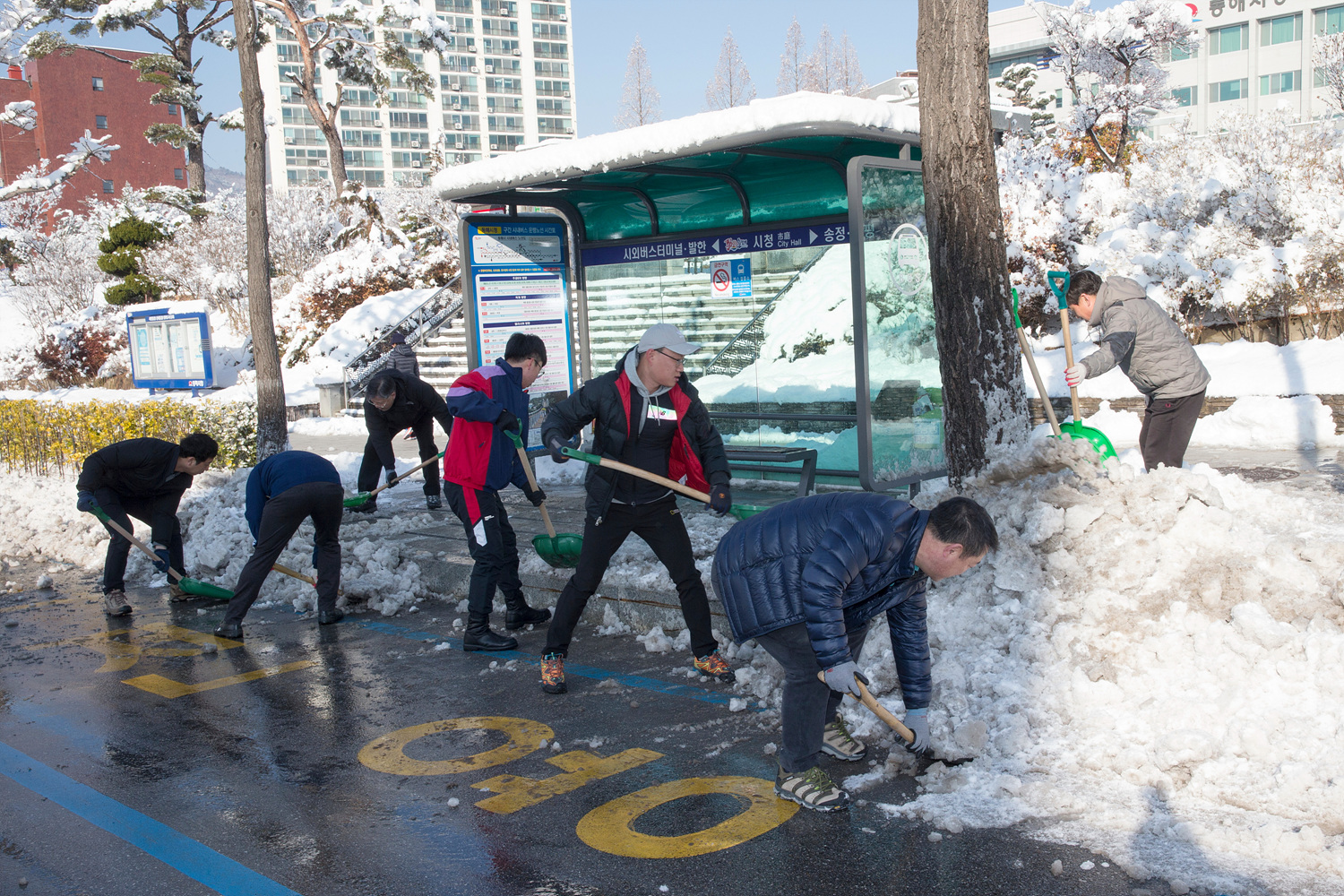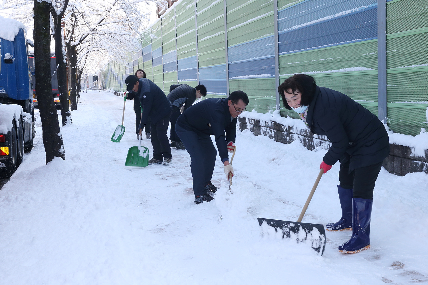 또한 시가지 이면도로와 보도 등에 대한 제설작업을 위해 9일(일) 9시를 기해 전 직원 비상근무를 발령하고 담당동 지역에 투입하여 제설작업을 실시했다.